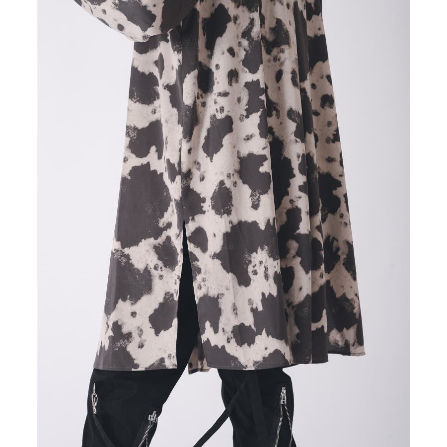 ムラになったプリントがカジュアルさを醸し出すと同時に、長い着丈を間延びさせない効果を高めています。