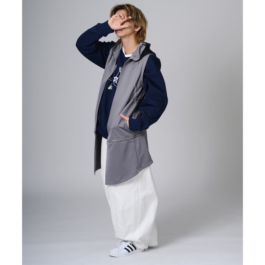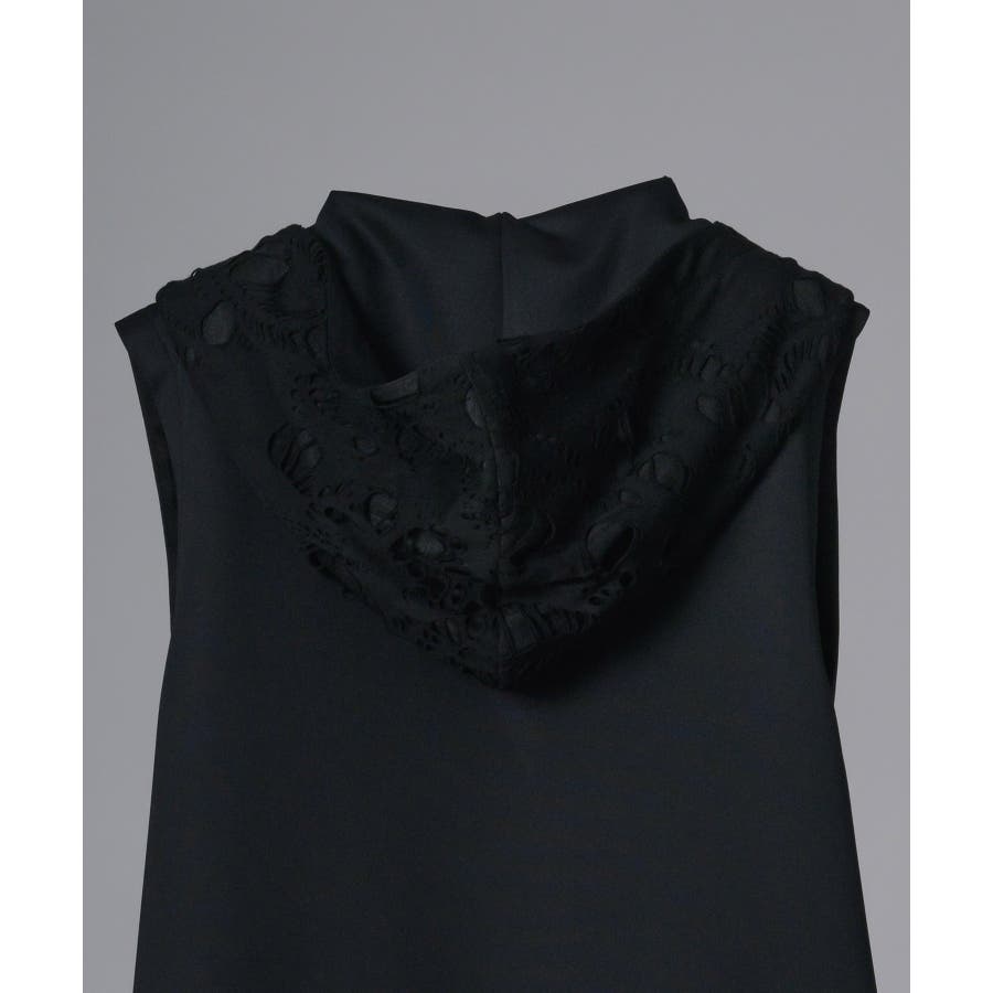 ノースリーブだからベスト感覚で着られるパーカーです。