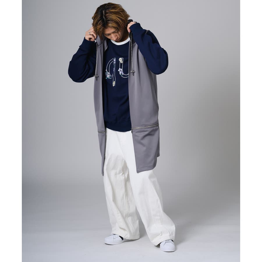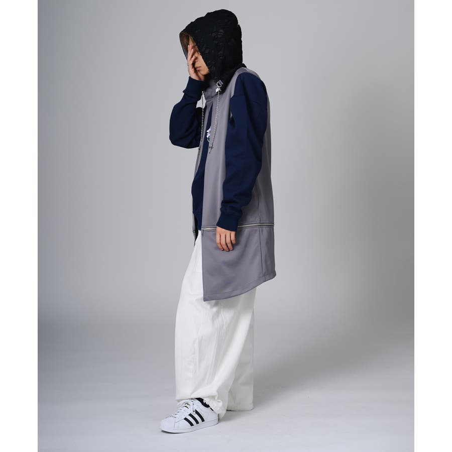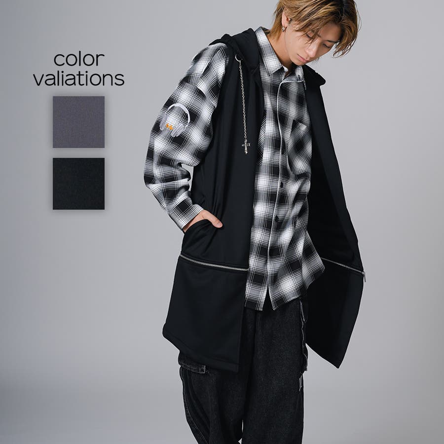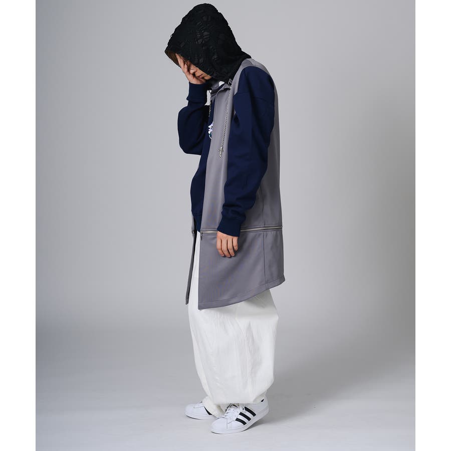 袖がないノースリーブタイプのロングパーカーです。