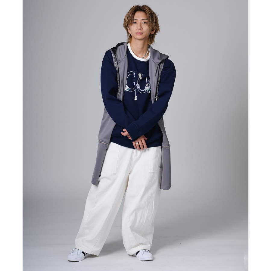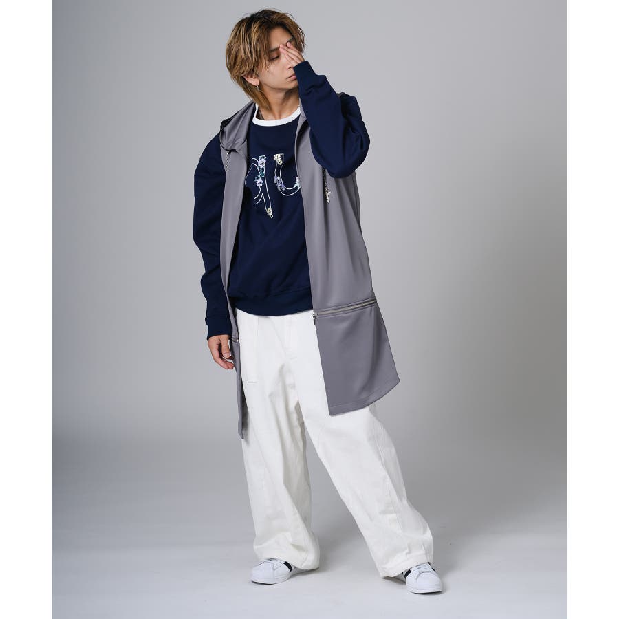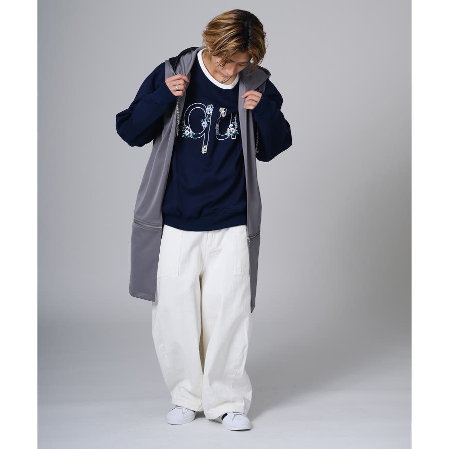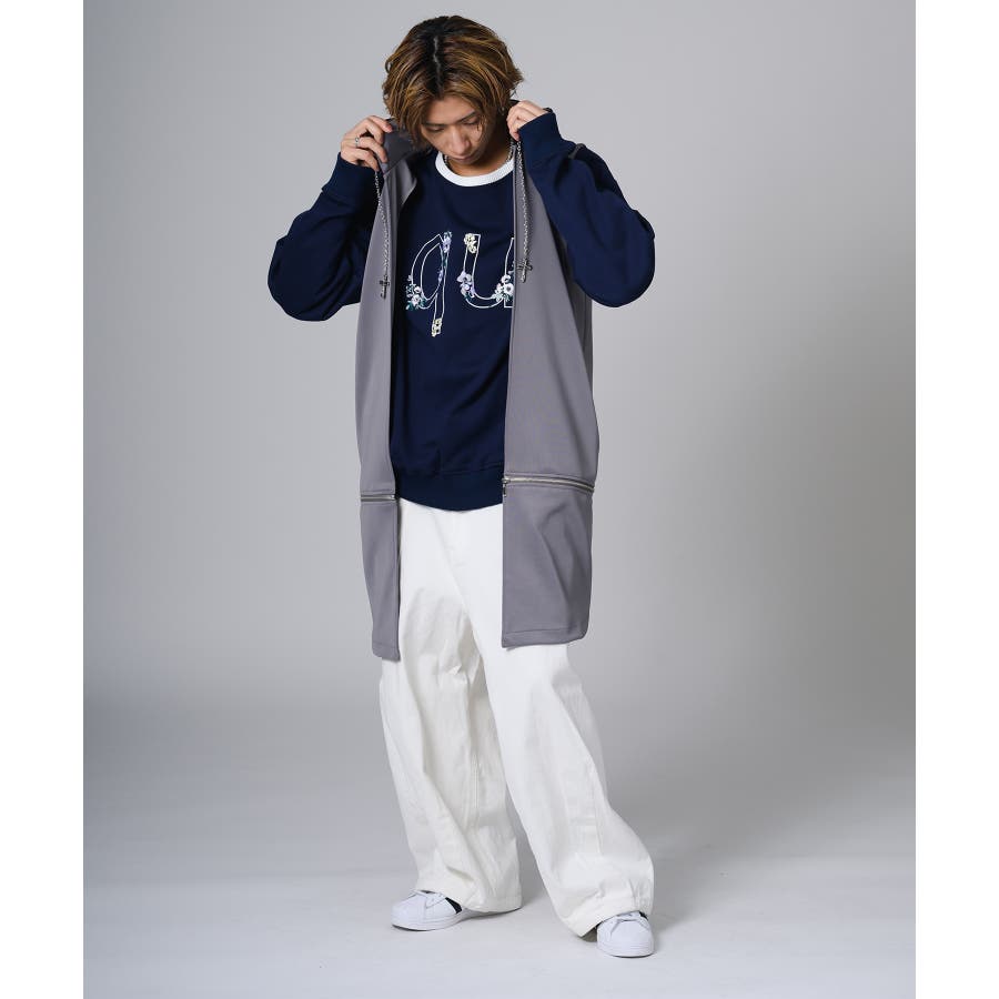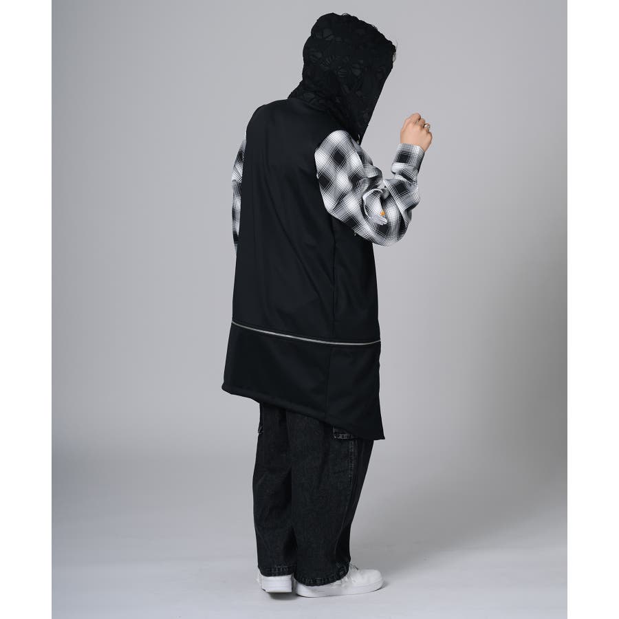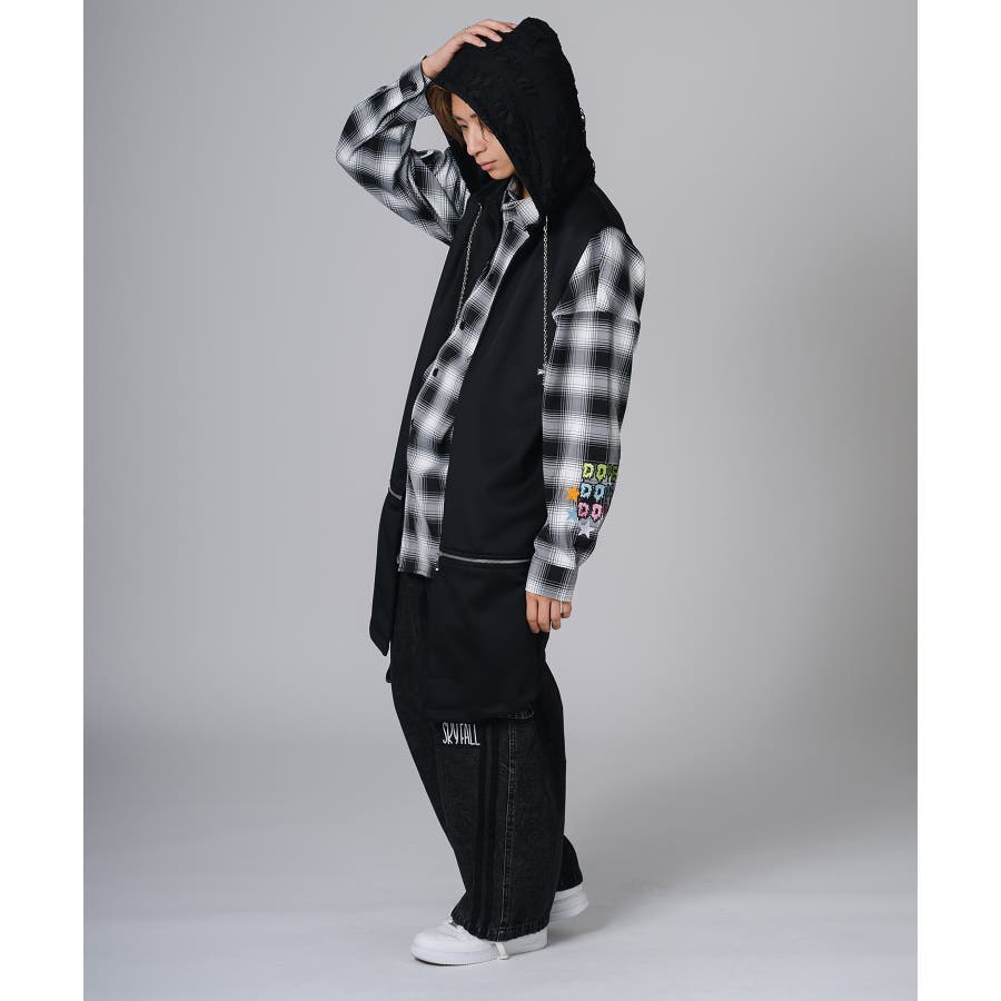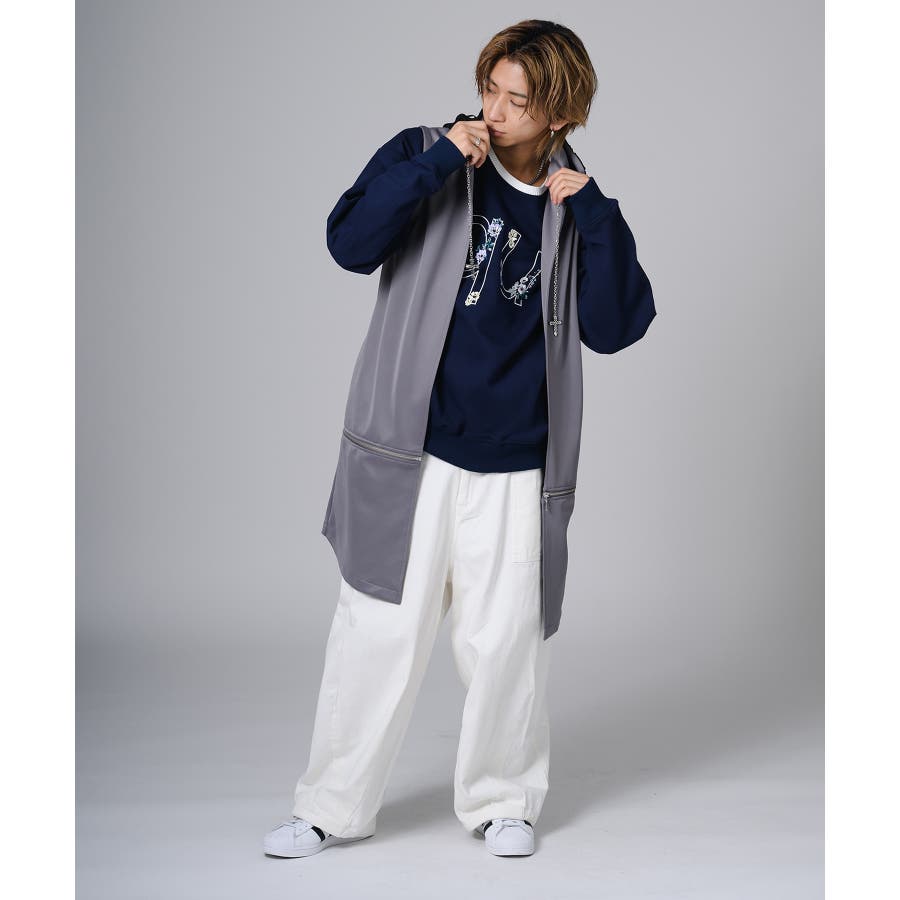 フード部分はダメージ加工をしてグランジ風のエッセンスも取り入れています。