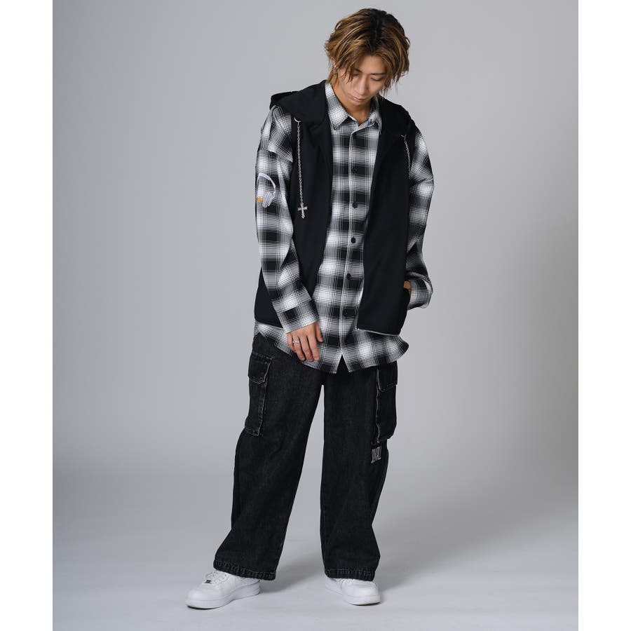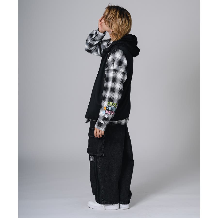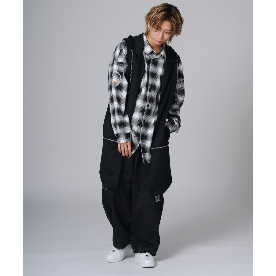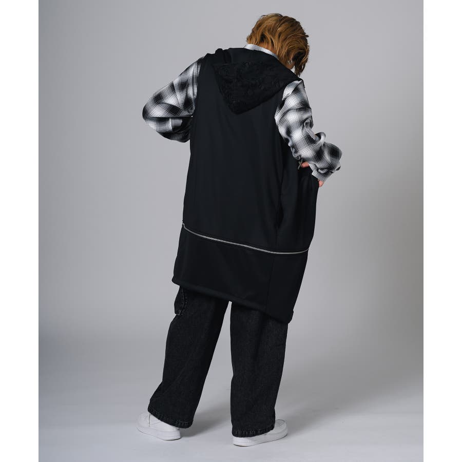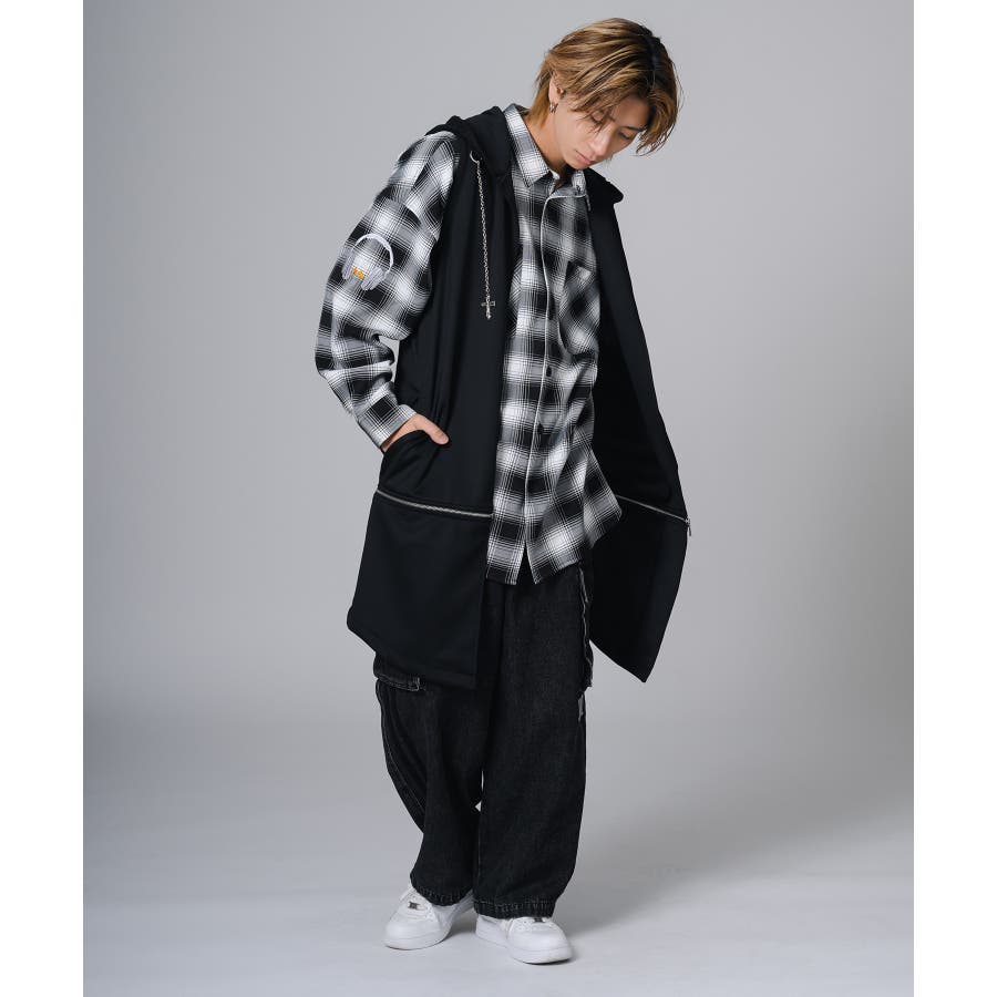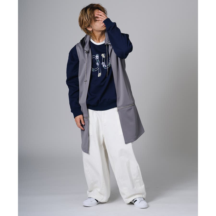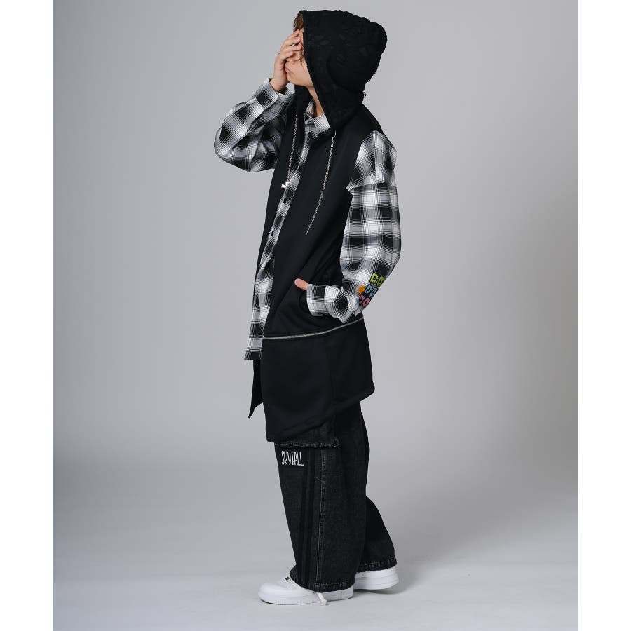 フード部分はダメージ加工をしてグランジ風のエッセンスも取り入れています。