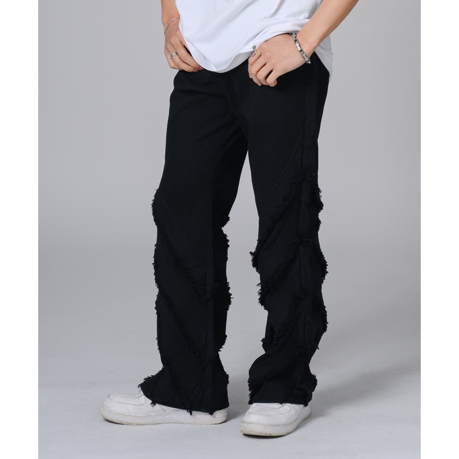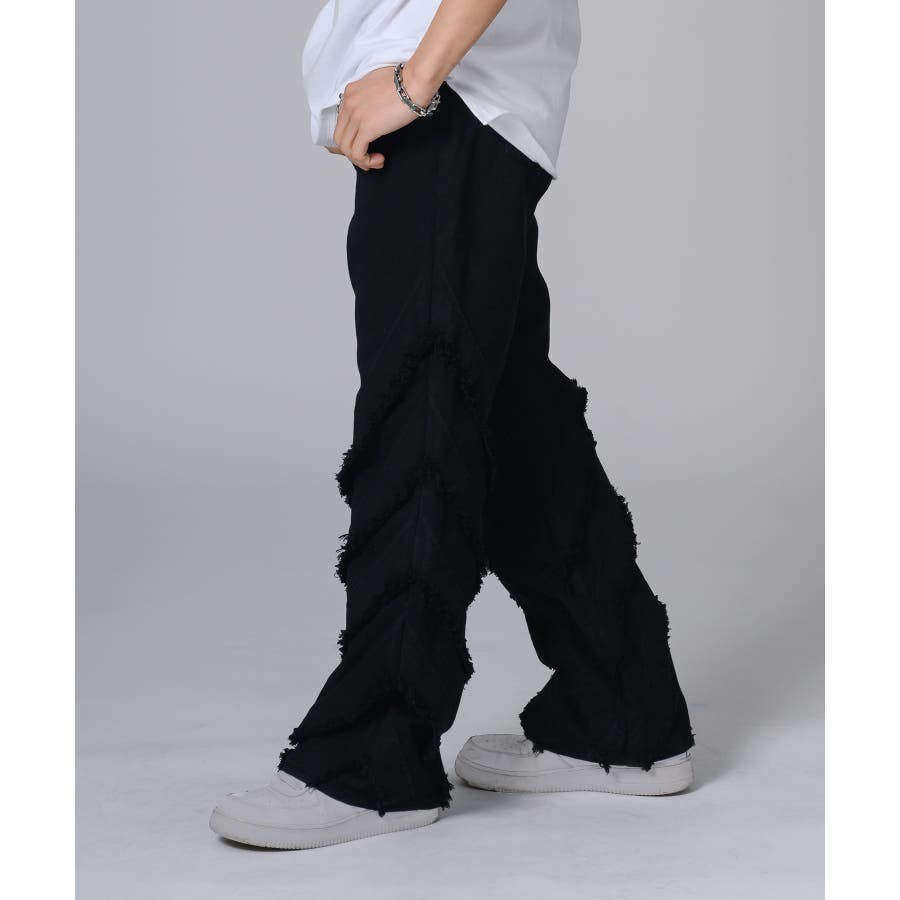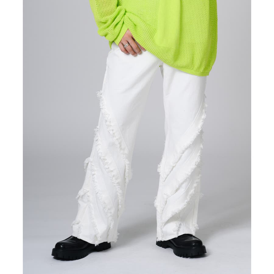 膝から下のフリンジが印象的なフレアパンツです。