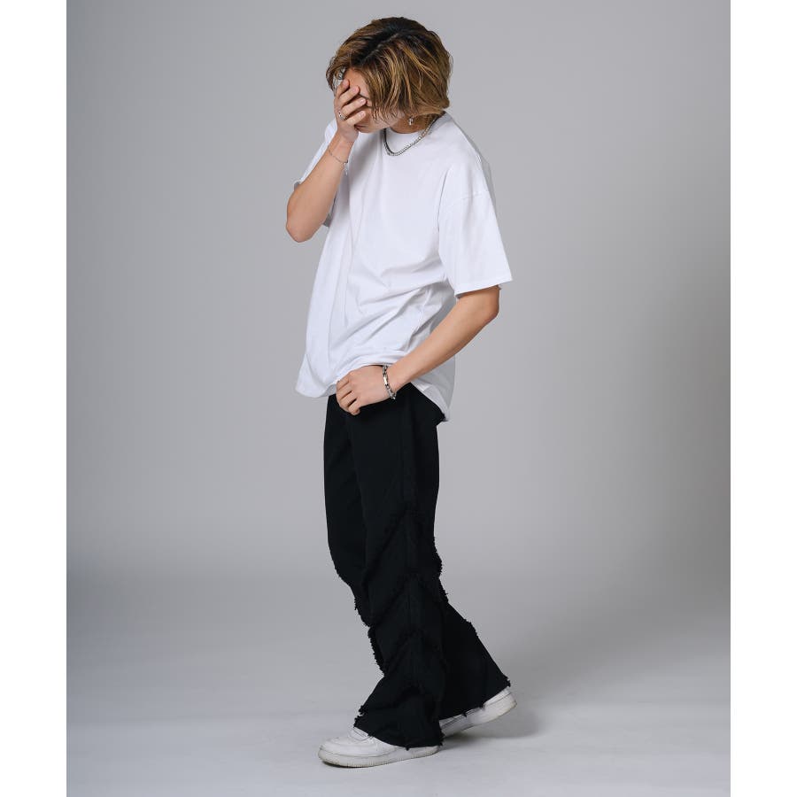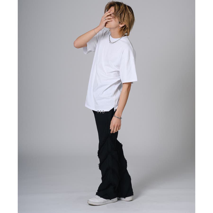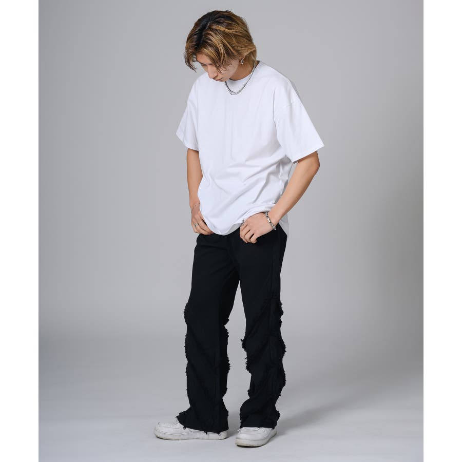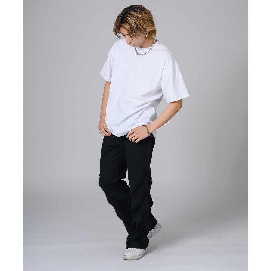 シンプルにTシャツに合わせるだけでもパンツの存在感がコーデを引き立てます。又ダメージ加工のあるTシャツやニットと合わせるとグランジ感が高めることができます。