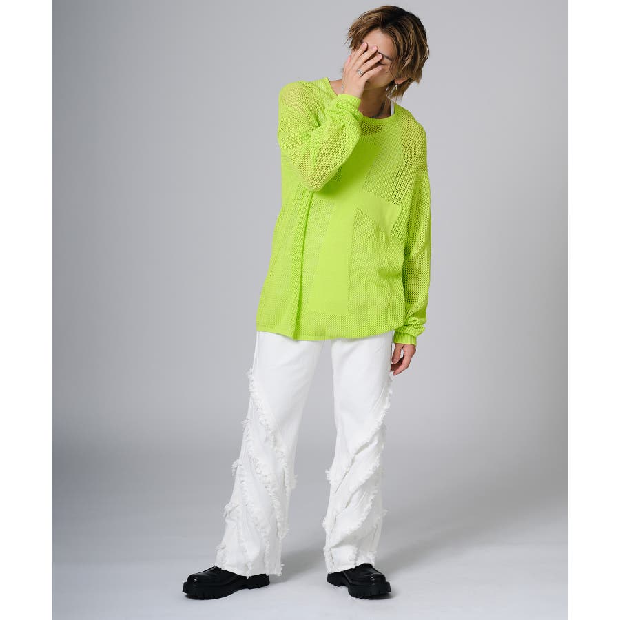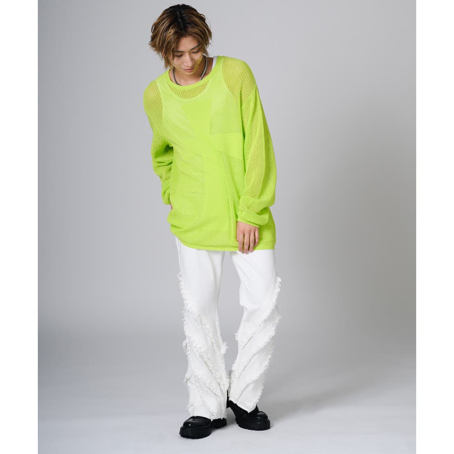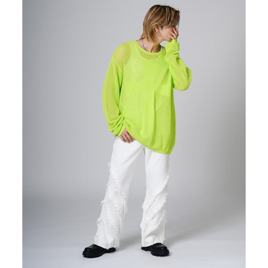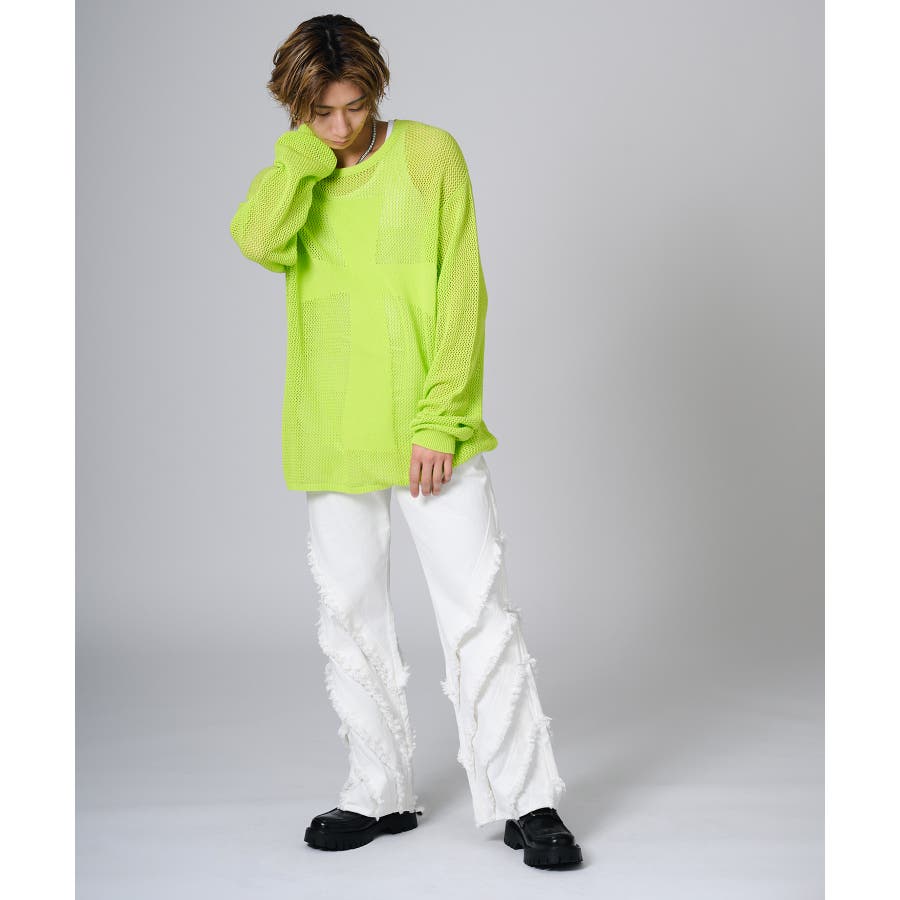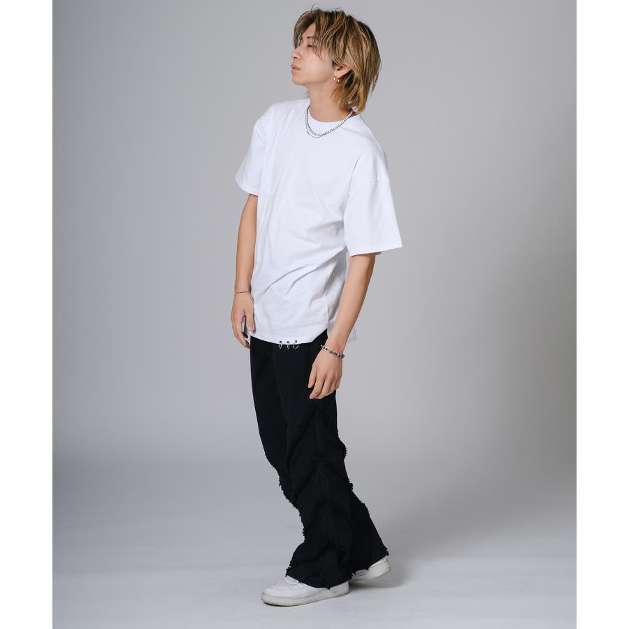 シンプルにTシャツに合わせるだけでもパンツの存在感がコーデを引き立てます。又ダメージ加工のあるTシャツやニットと合わせるとグランジ感が高めることができます。