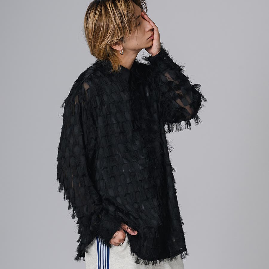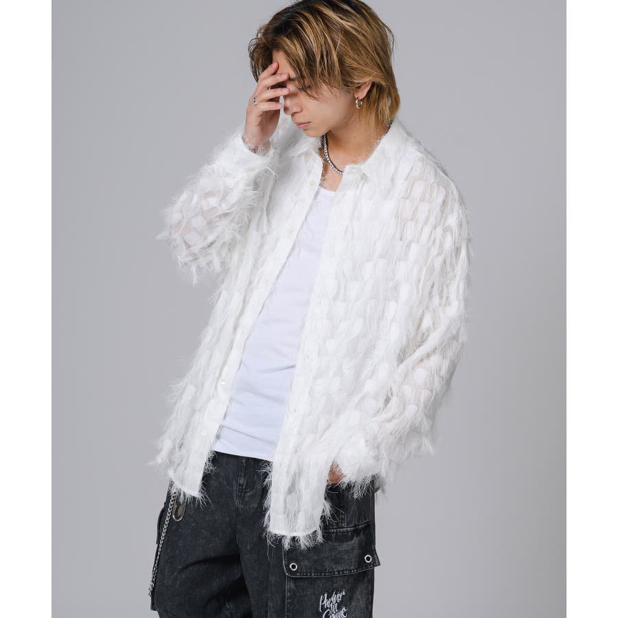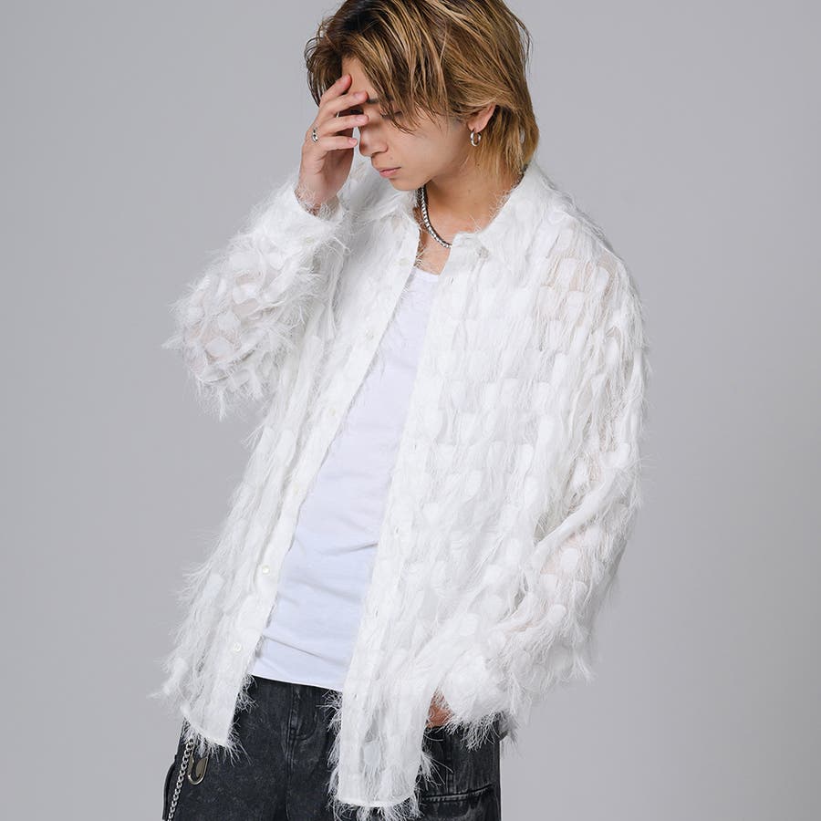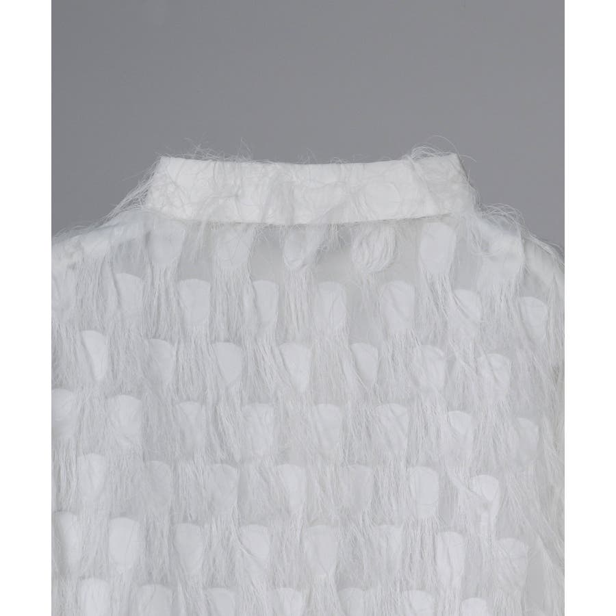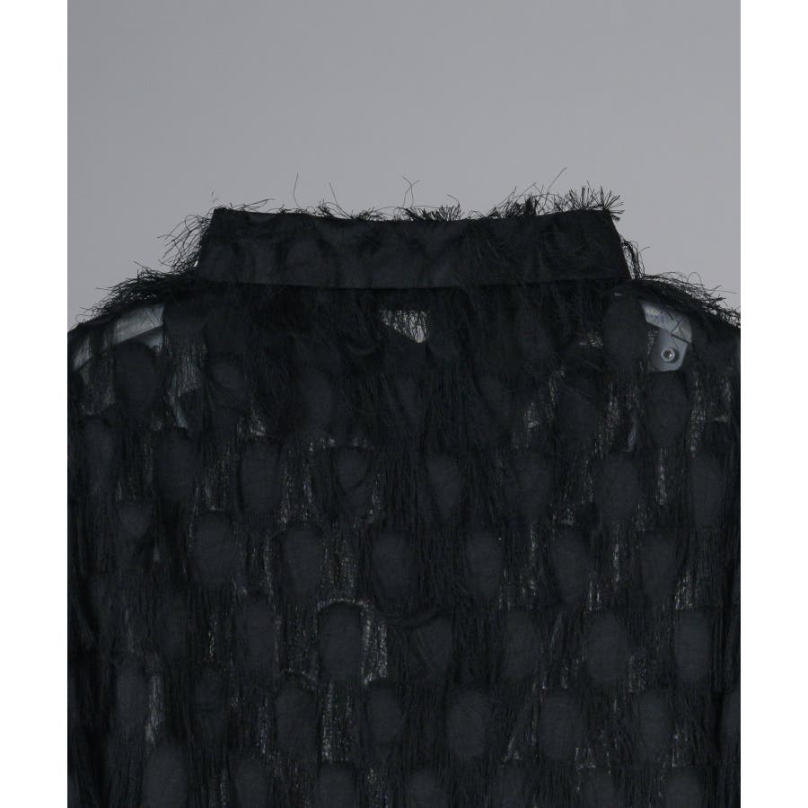 表面がシャギー調の毛に覆われている様な印象ながら、透る薄い素材でクールでセクシーな印象も醸し出します。