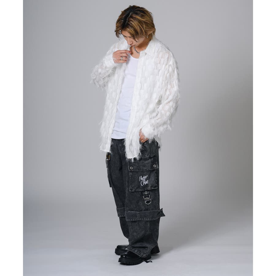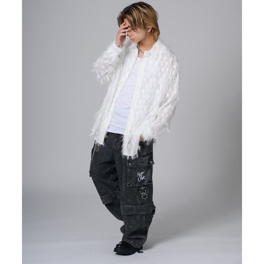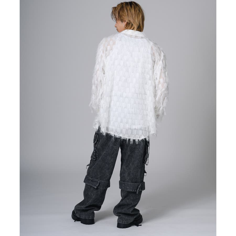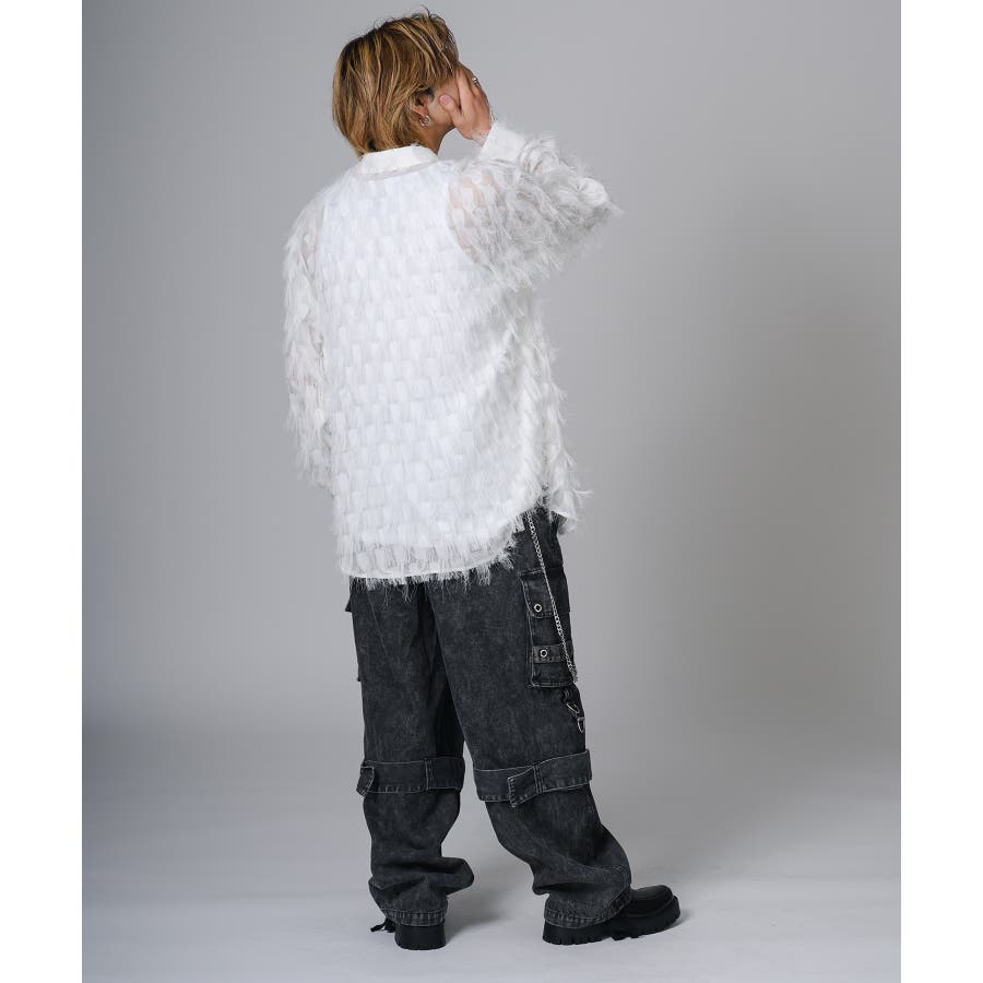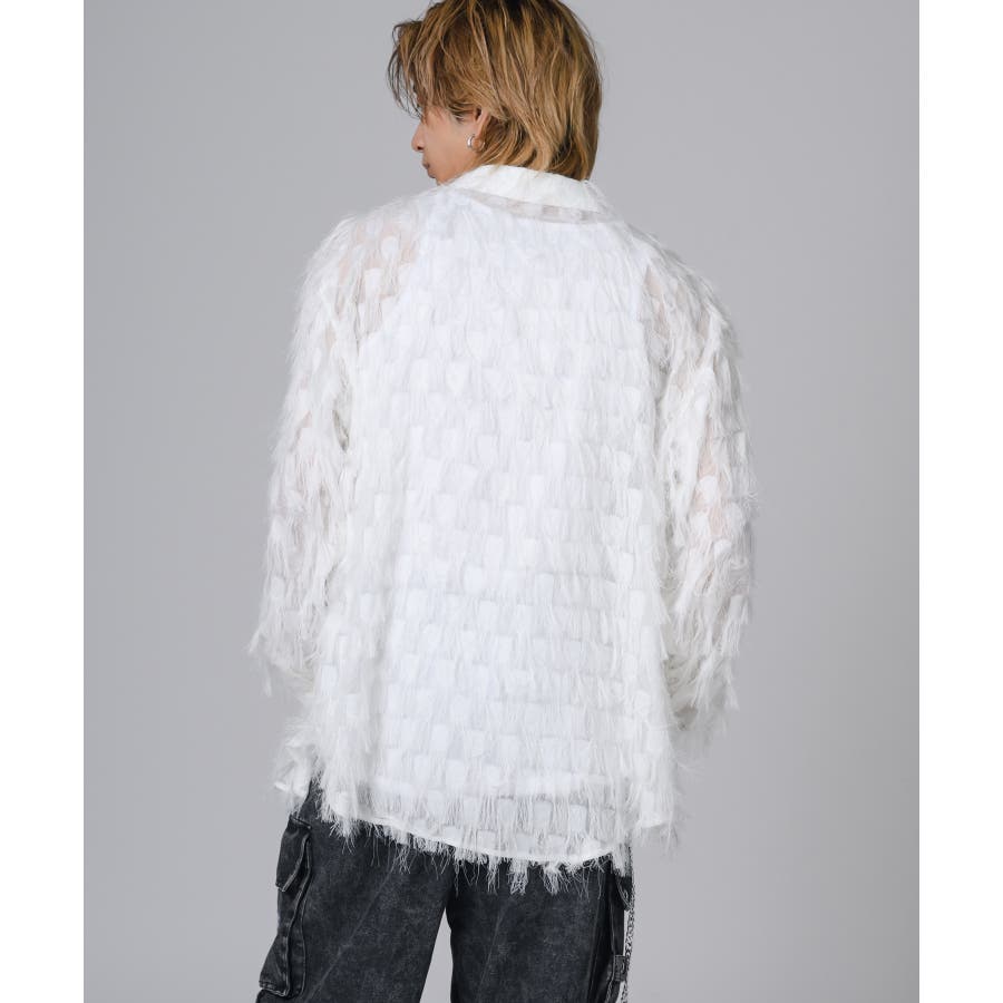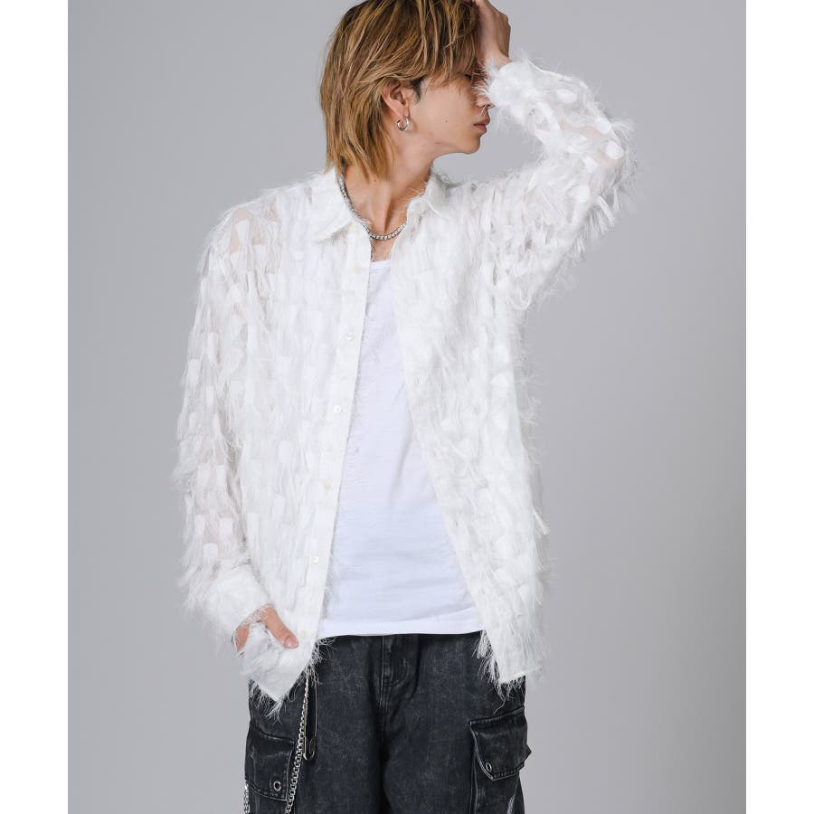 表面がシャギー調の毛に覆われている様な印象ながら、透る薄い素材でクールでセクシーな印象も醸し出します。