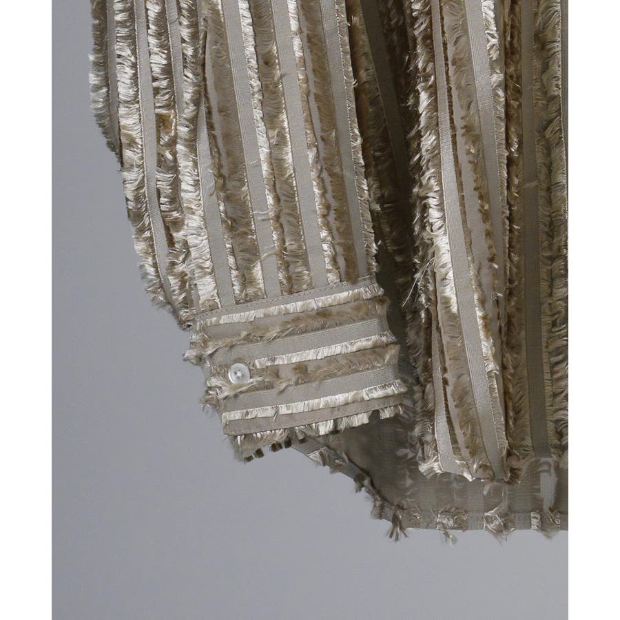 ジャカード織りによるストライプ状の表面はフリンジの様な毛足があり、その独特の光沢感がエレガントさも醸し出します。