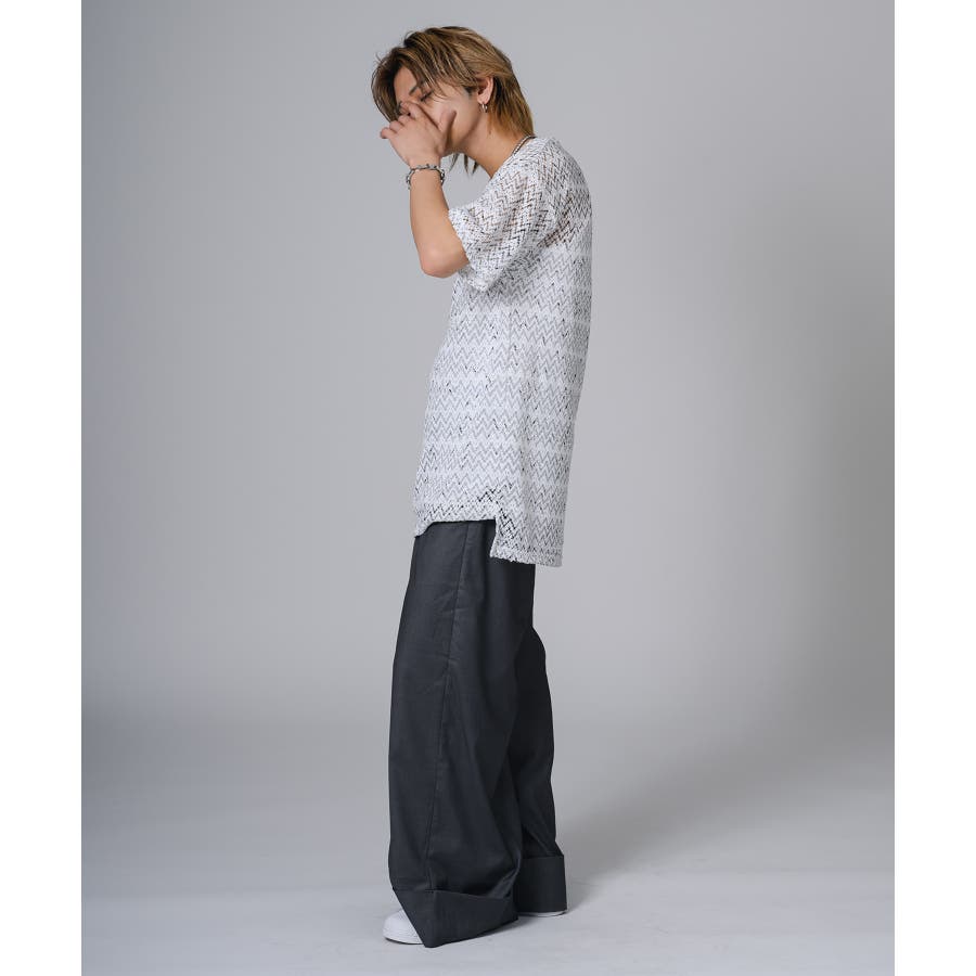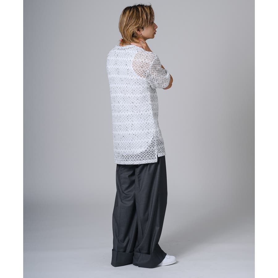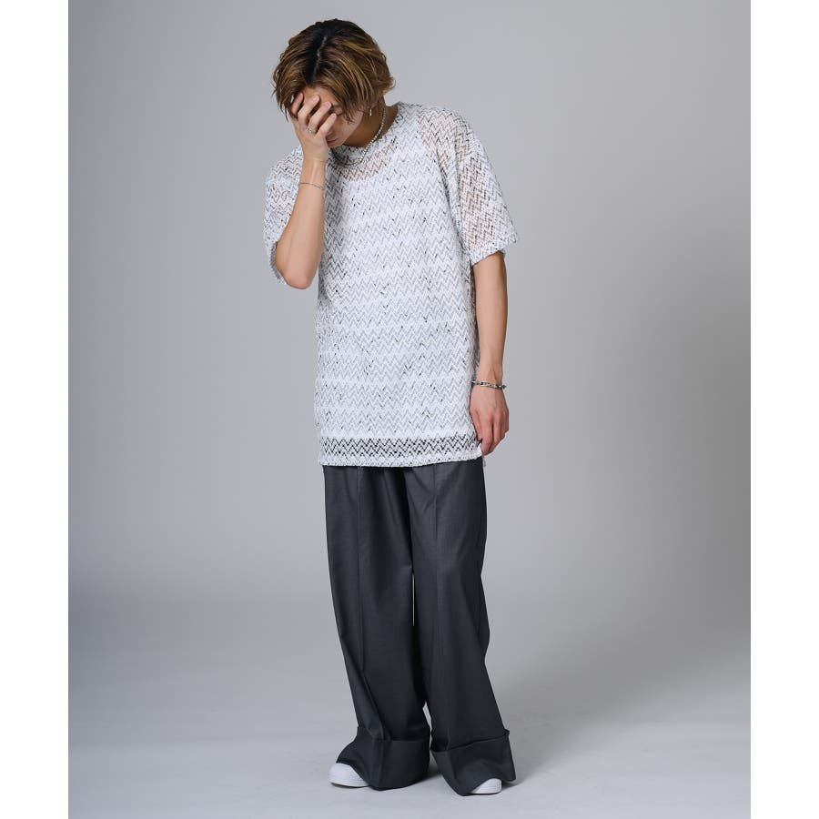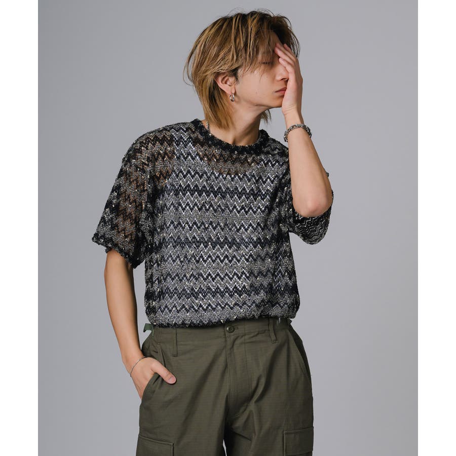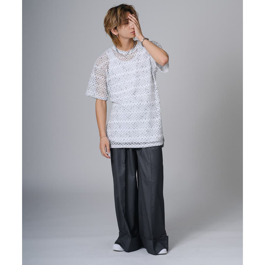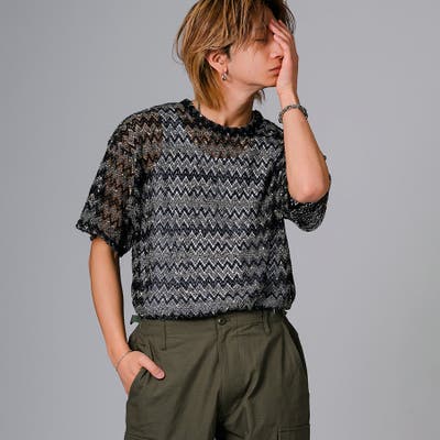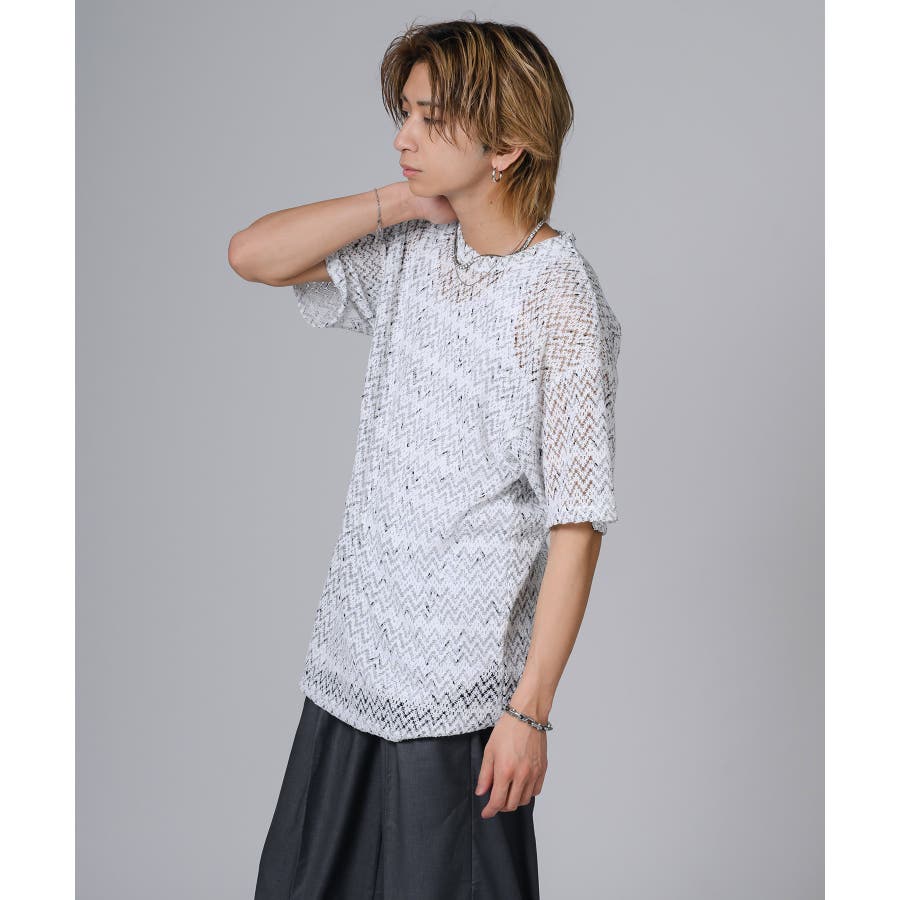 ニットの様な編み方でレースの様な表面が特徴のTシャツです。