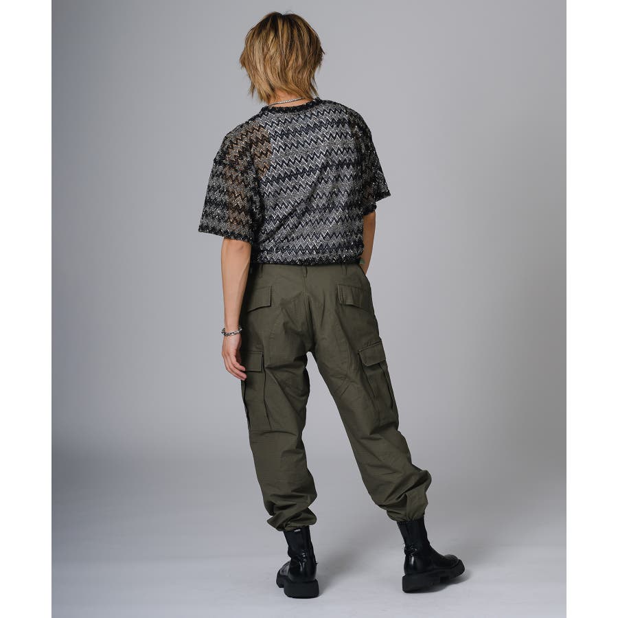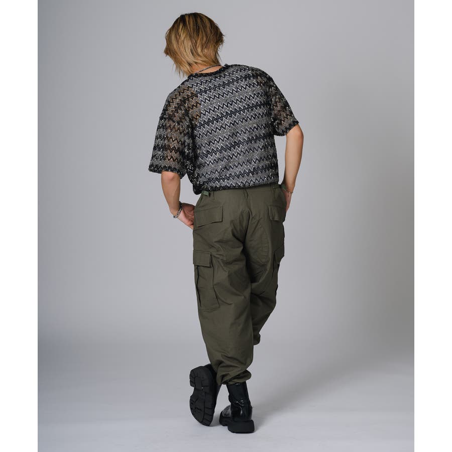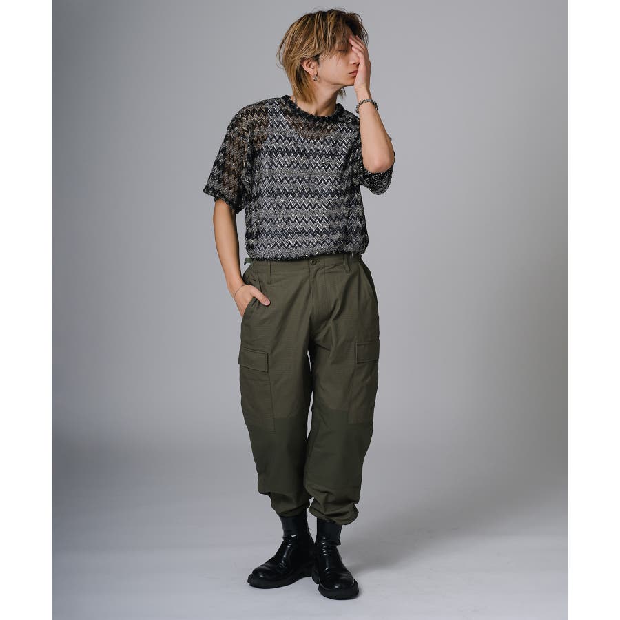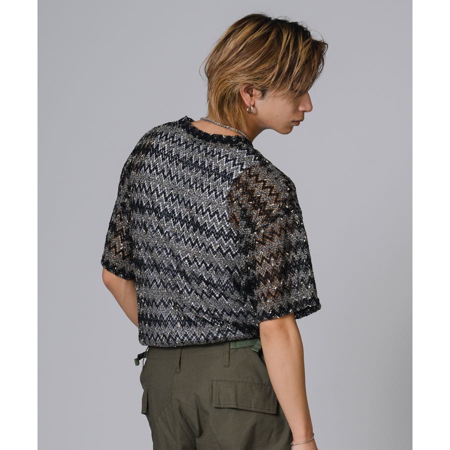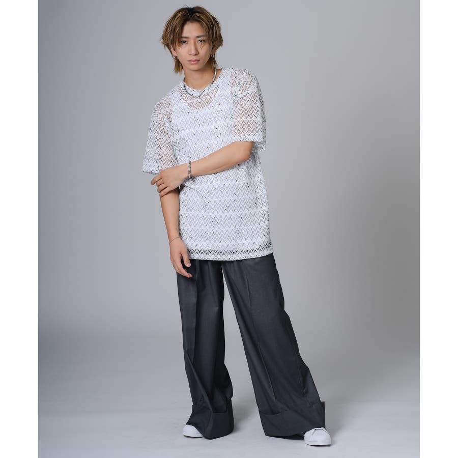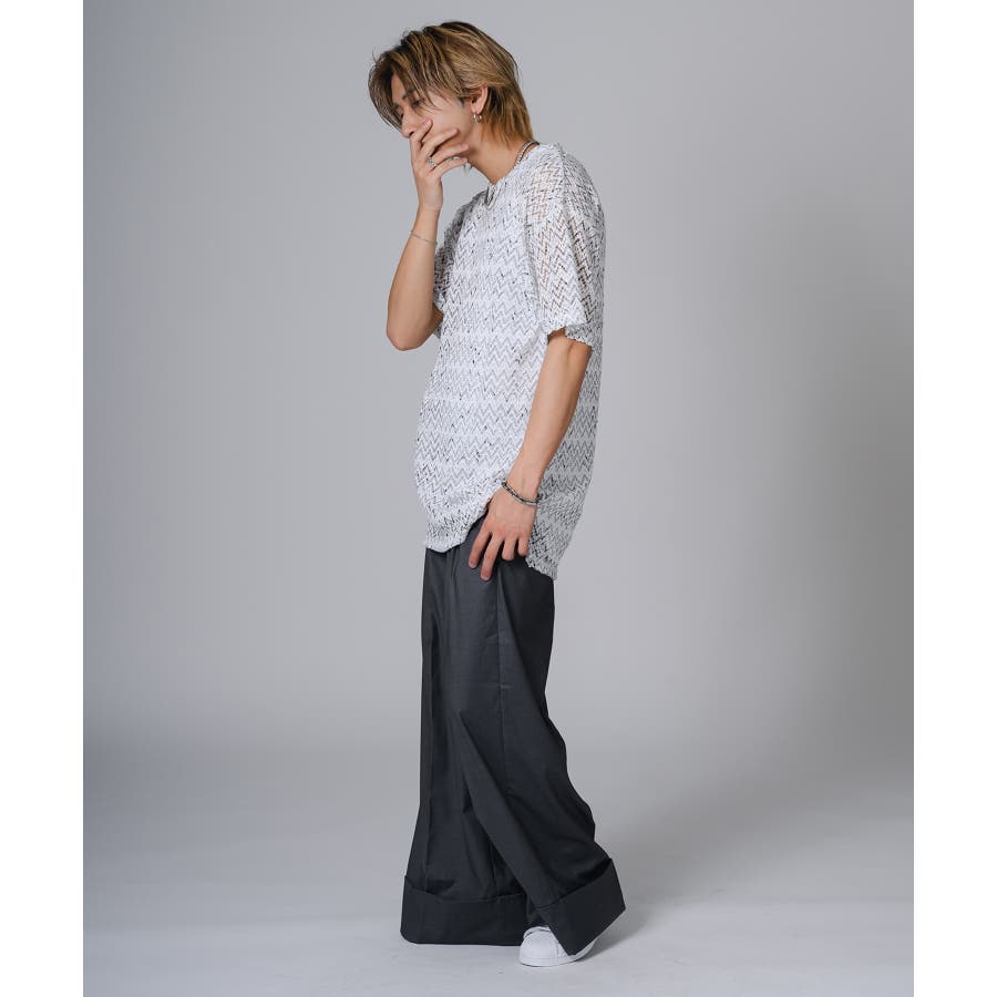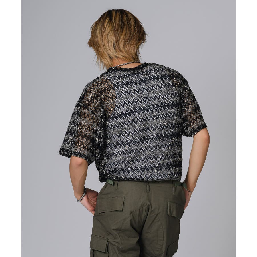 ニットの様な編み方でレースの様な表面が特徴のTシャツです。