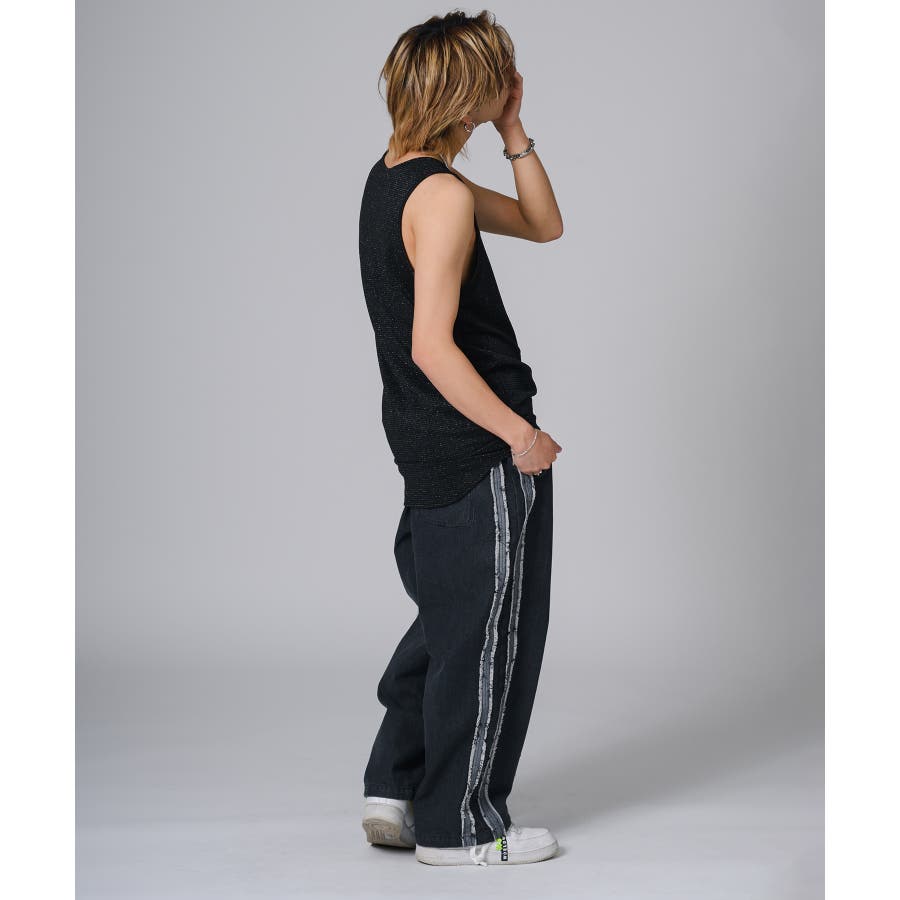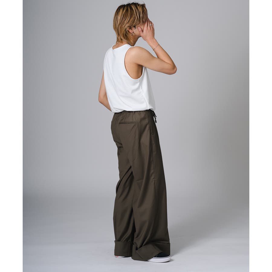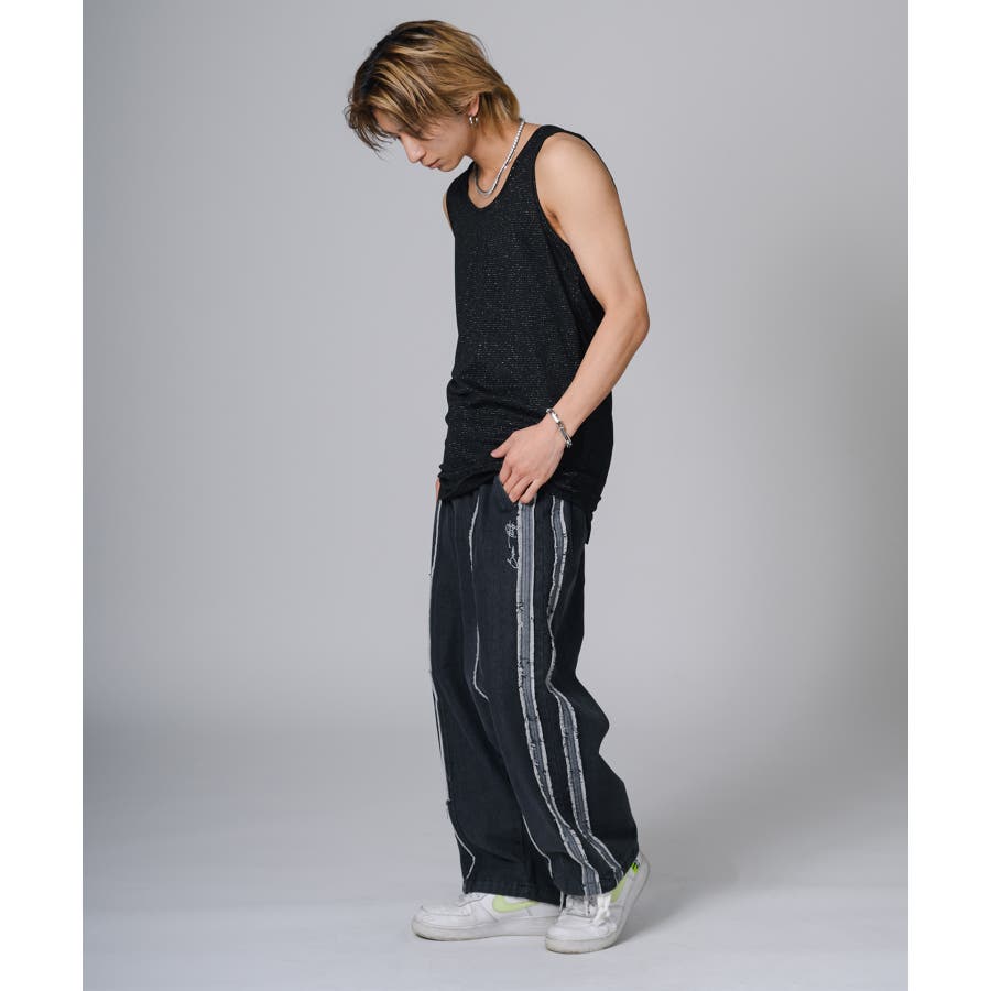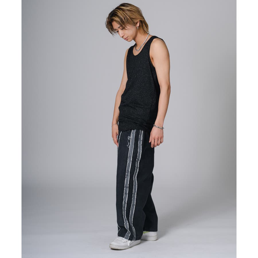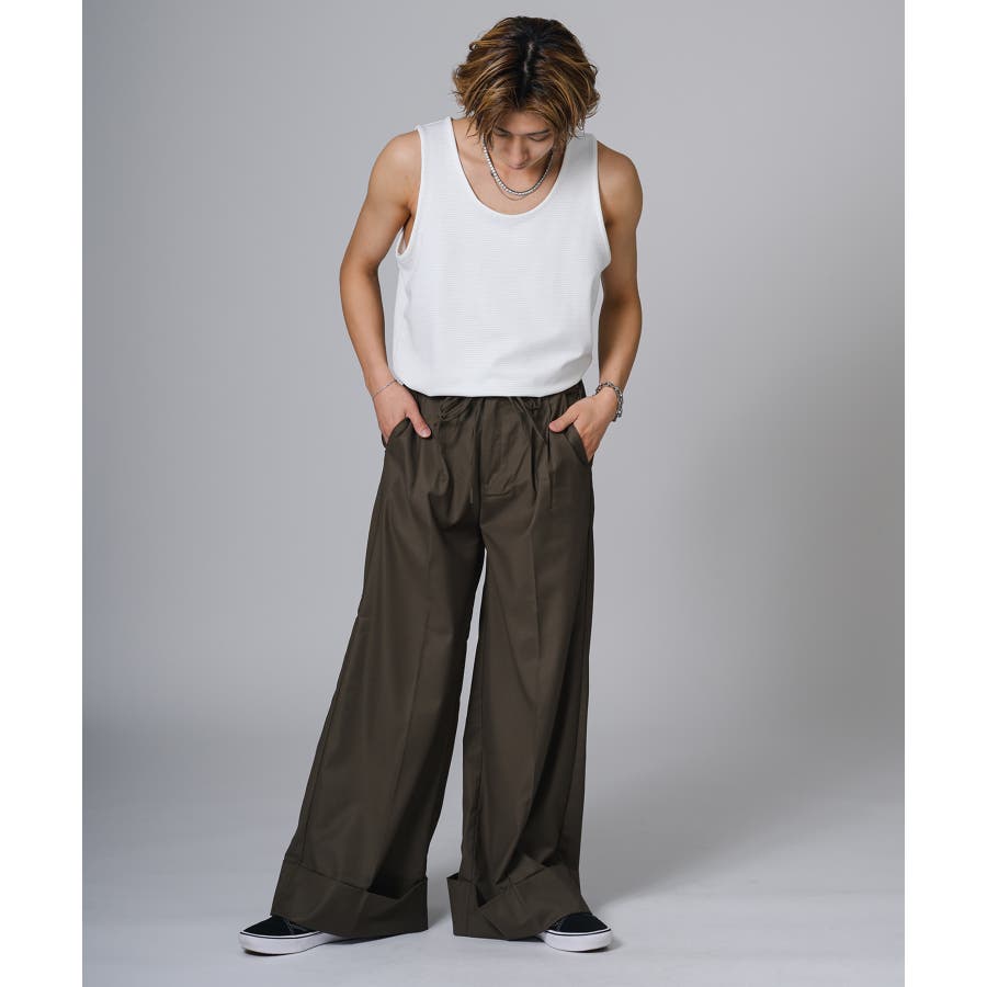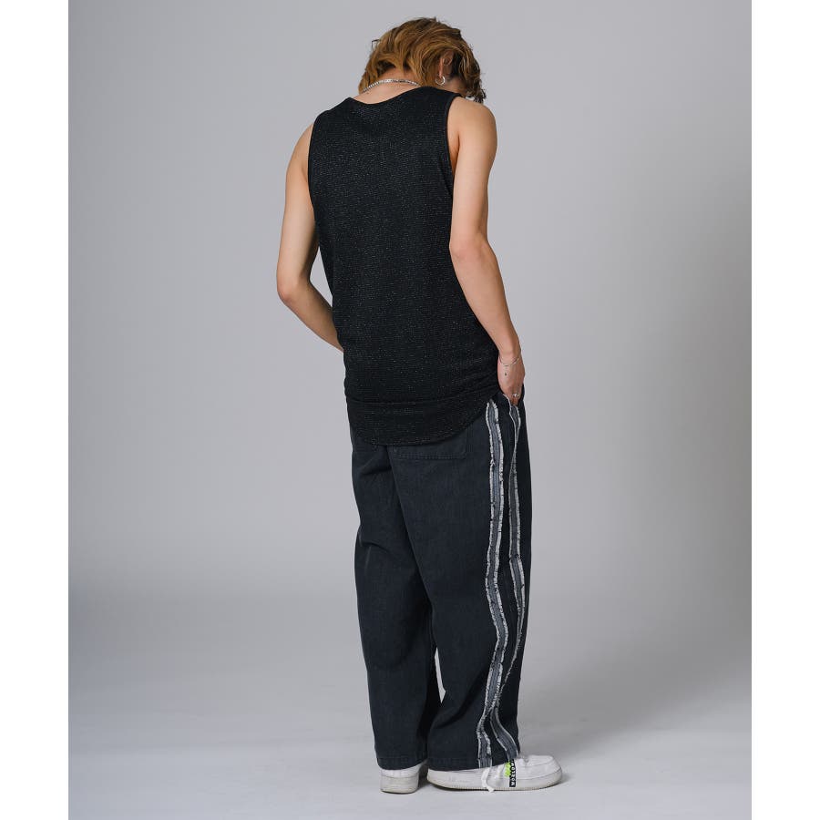 ロング丈のタンクトップは、オーバーサイズのTシャツのインナーとして合わせると裾がはみ出て丁度いいレイヤードができます。