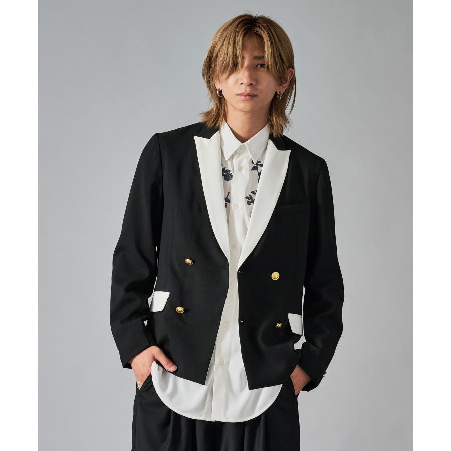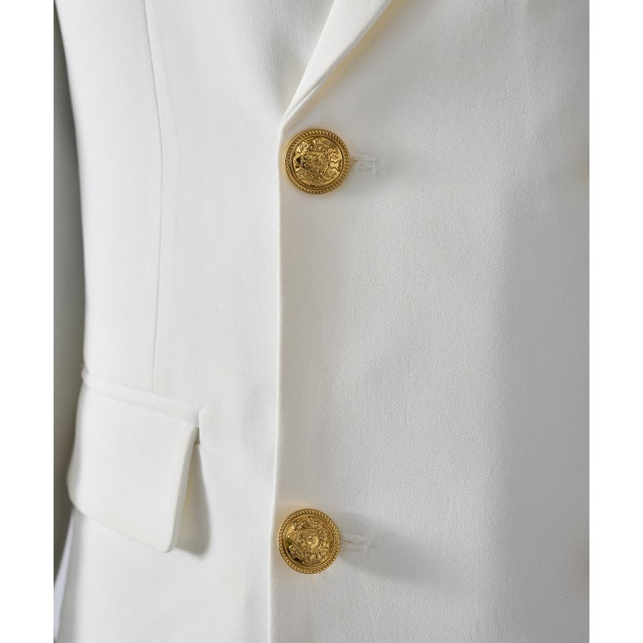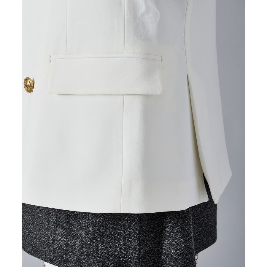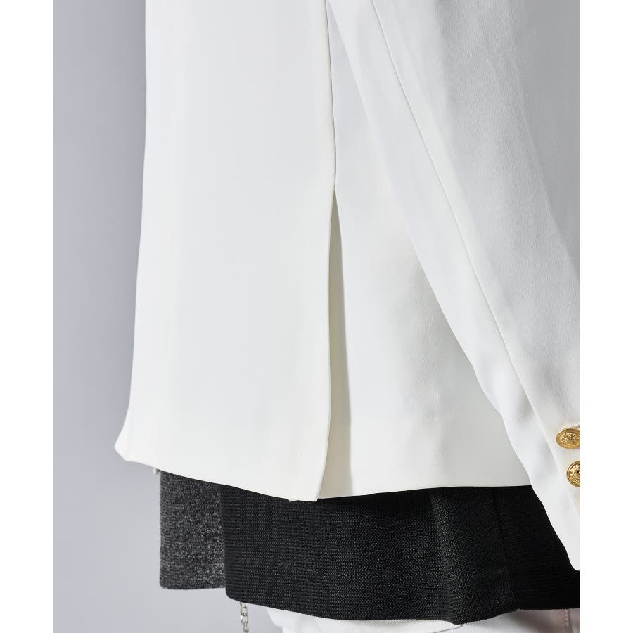 | 細い襟が特徴的なピークドラペルのWジャケットです ■detail トレンドの金ボタンを用いたブレザータイプのWジャケットです ゆとりのあるワイドショルダーで肩パッドのないアンコン仕様がカジュアルさを演出します 動きやすいサイドベンツの仕様に短めの着丈が新鮮です ■fabric エレガントさを醸し出すドレープ感、そして気軽に着られる軽量感をマッチさせたポリエステル素材を使用しています ホワイト、ブラックの単色カラーの他に、ブラックベースにラペルとフラップのカラーを切り替えたマルチカラーの3色展開です ■styling ショート丈だからインナーの裾がはみ出すレイヤード感がクールで、フロントを開けたままカジュアルな着こなしがオススメです | |||||||||||||||