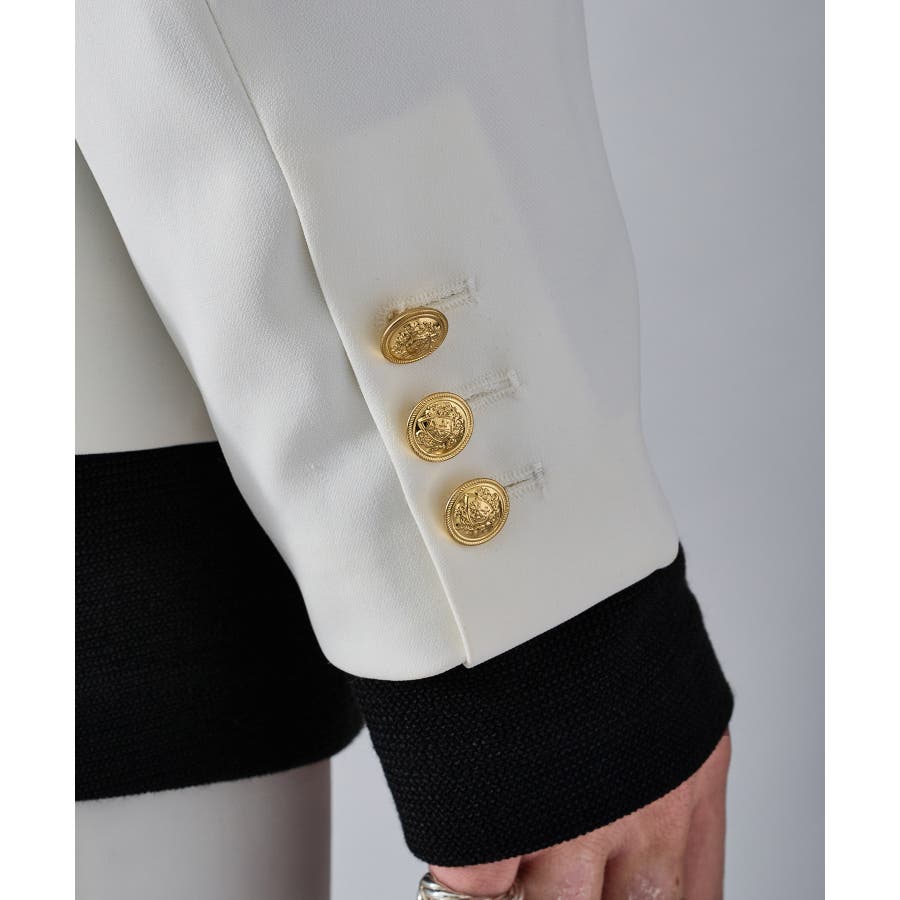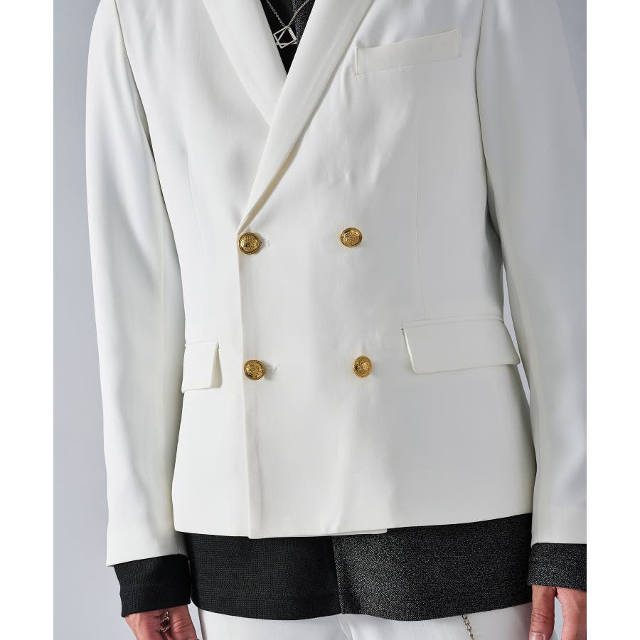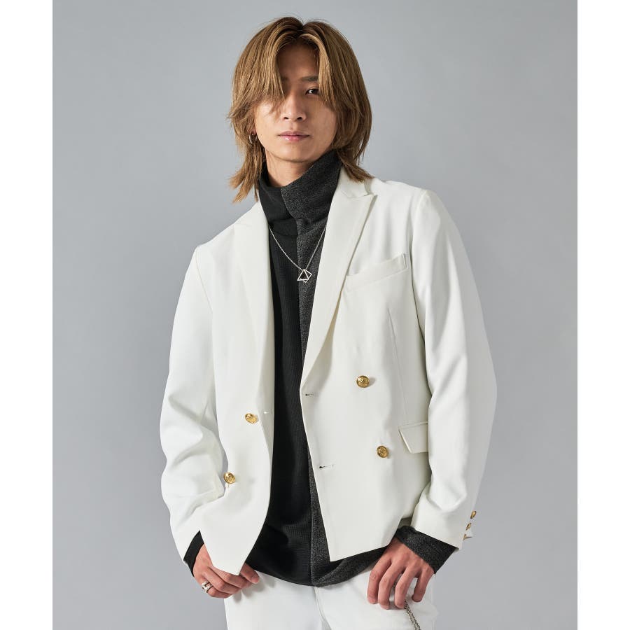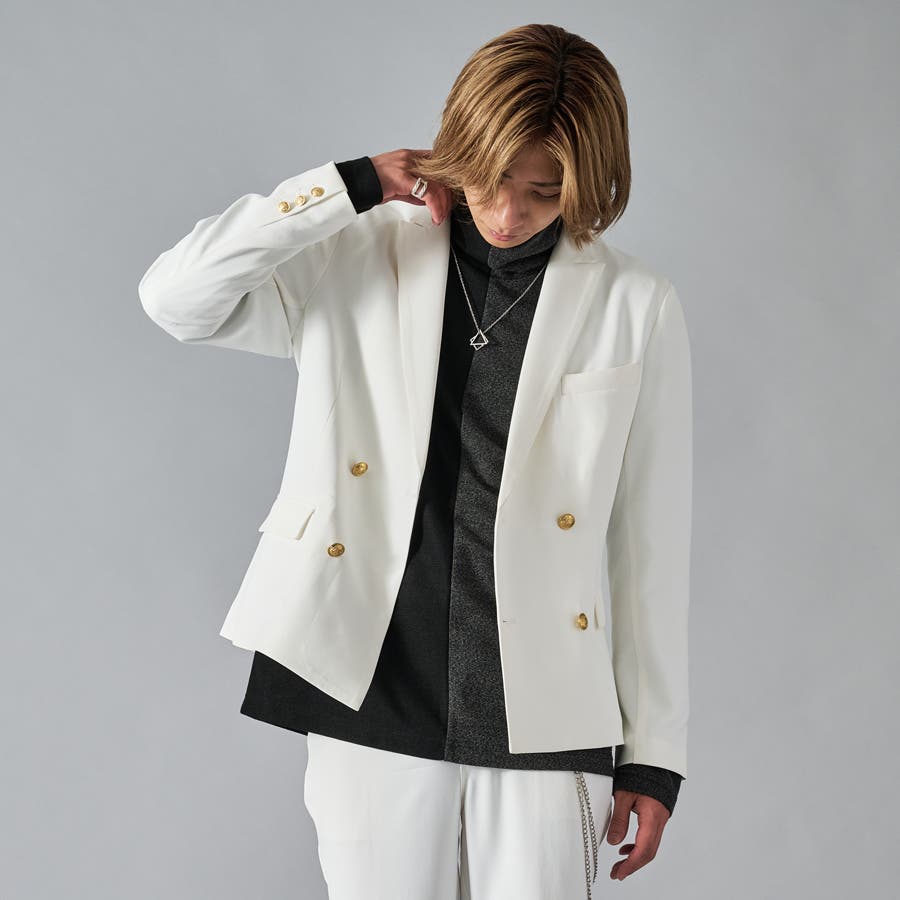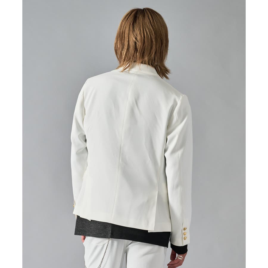 | 細い襟が特徴的なピークドラペルのWジャケットです ■detail トレンドの金ボタンを用いたブレザータイプのWジャケットです ゆとりのあるワイドショルダーで肩パッドのないアンコン仕様がカジュアルさを演出します 動きやすいサイドベンツの仕様に短めの着丈が新鮮です ■fabric エレガントさを醸し出すドレープ感、そして気軽に着られる軽量感をマッチさせたポリエステル素材を使用しています ホワイト、ブラックの単色カラーの他に、ブラックベースにラペルとフラップのカラーを切り替えたマルチカラーの3色展開です ■styling ショート丈だからインナーの裾がはみ出すレイヤード感がクールで、フロントを開けたままカジュアルな着こなしがオススメです | |||||||||||||||