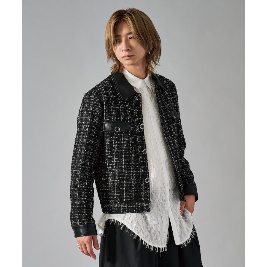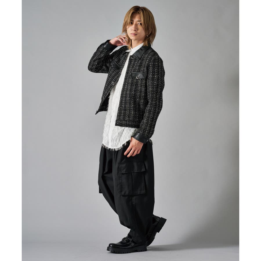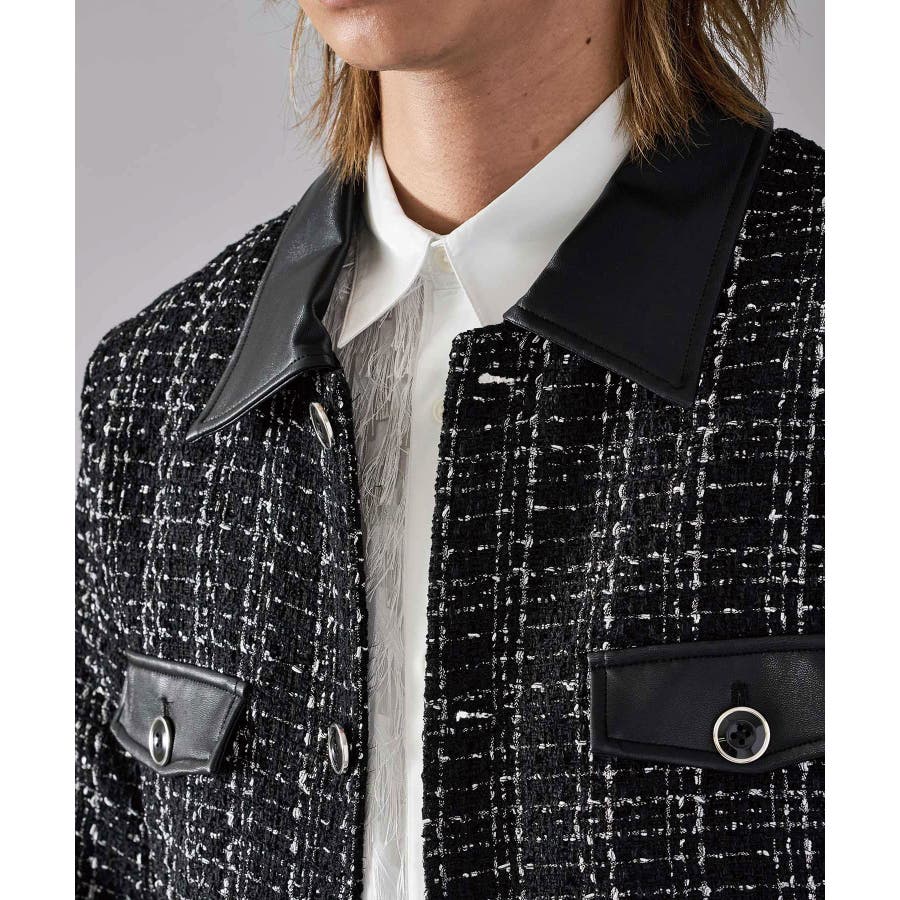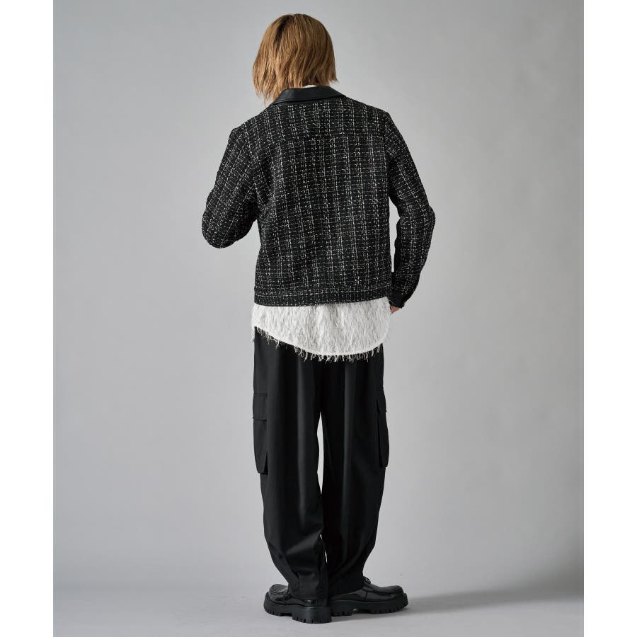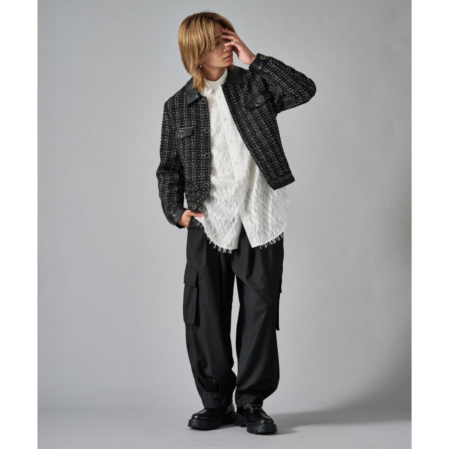 | ツィーディーなCPO風のショートジャケットです ■detail フロントが釦のGジャン風のデザインで、襟、カフス、胸フラップのフェイクレザーがアクセントになっています ■fabric 懐かしいエモさ感じるツィード生地でありながら、ポリエステル素材だから軽くて着やすい ■styling ワイドスラックスでモードな雰囲気を醸しだしたり、デニムで合わせても少しエレガントさを感じさせるコーデが楽しめます | |||||||||||||||