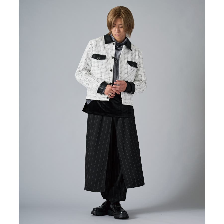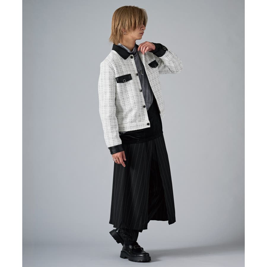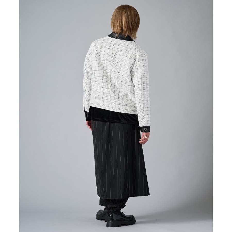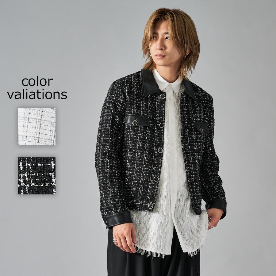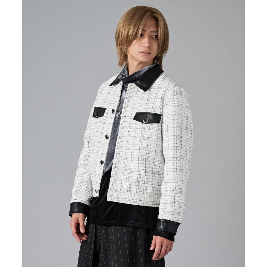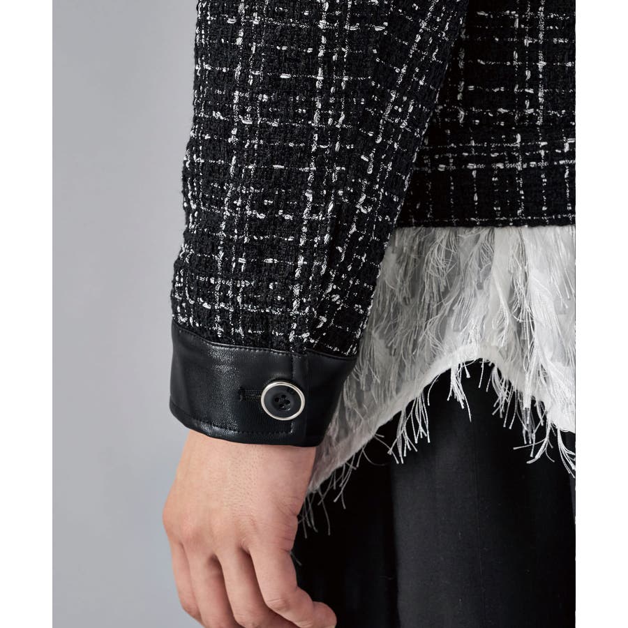 | ツィーディーなCPO風のショートジャケットです ■detail フロントが釦のGジャン風のデザインで、襟、カフス、胸フラップのフェイクレザーがアクセントになっています ■fabric 懐かしいエモさ感じるツィード生地でありながら、ポリエステル素材だから軽くて着やすい ■styling ワイドスラックスでモードな雰囲気を醸しだしたり、デニムで合わせても少しエレガントさを感じさせるコーデが楽しめます | |||||||||||||||