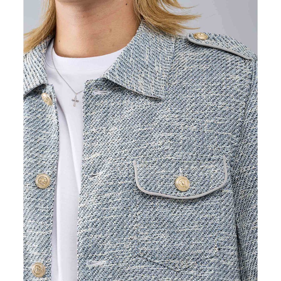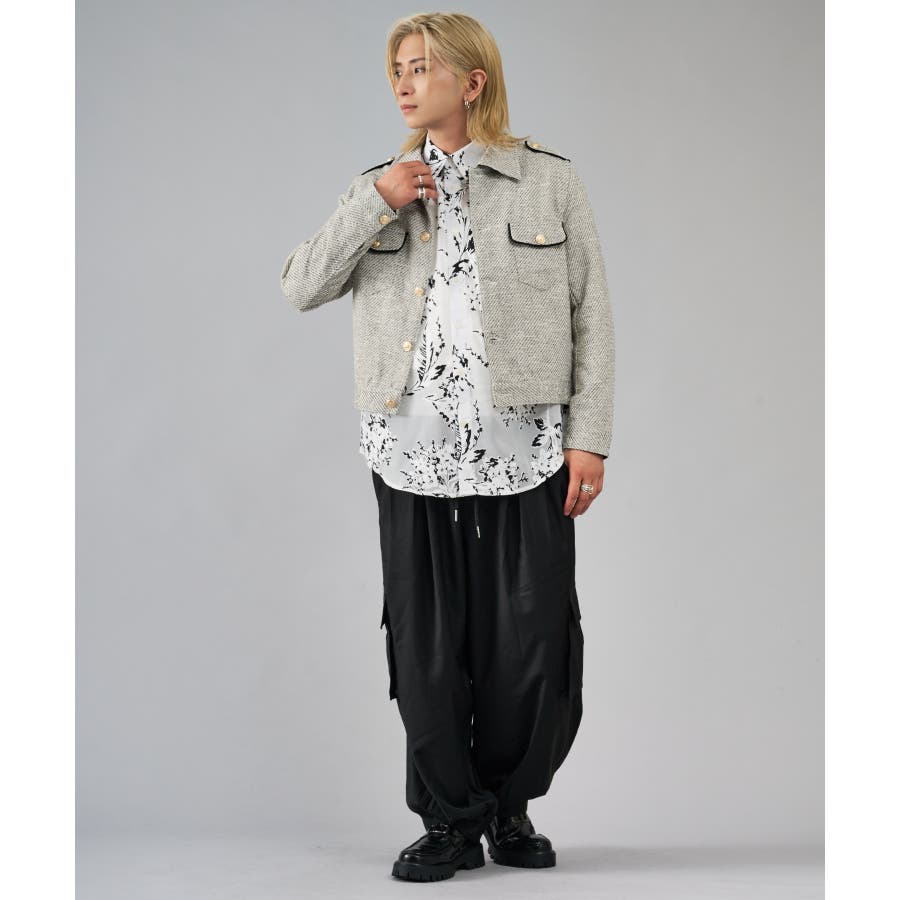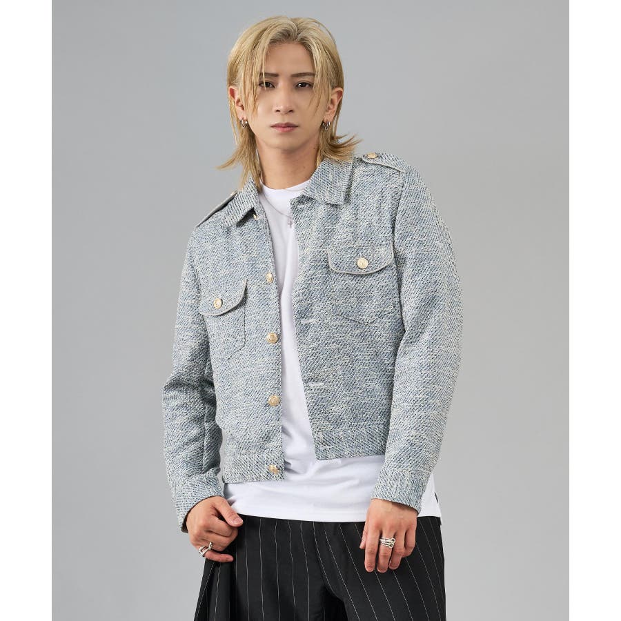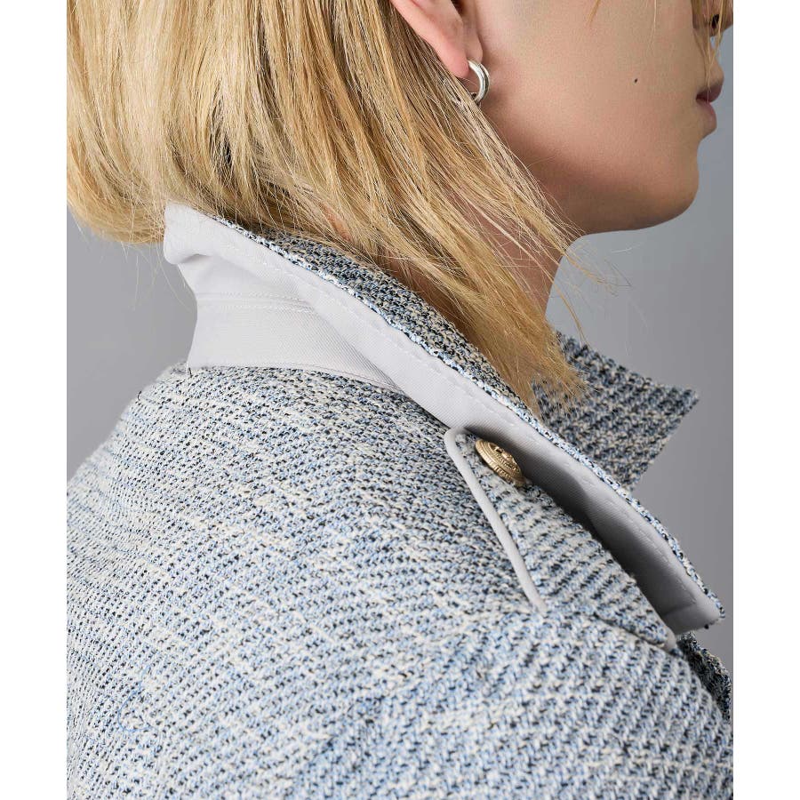 | ツイード素材のミリタリージャケット ■detail 金釦のエポレットがトレンドのミリタリー感を醸し出すデザイン 配色を替えた襟裏、カフス裏及びポケットのフラップ裏のカラーなど細部へも揺るぎない拘りを感じる ■fabric 清涼感あるサマーツィードはドライなタッチで、エレガントさもあって都会的 ■styling Tシャツにデニムと言ったラフなスタイルから、シャツとワイドスラックスでドレスアップしたスタイルまで、着回しのバリエーションが広いアイテムです | |||||||||||||||