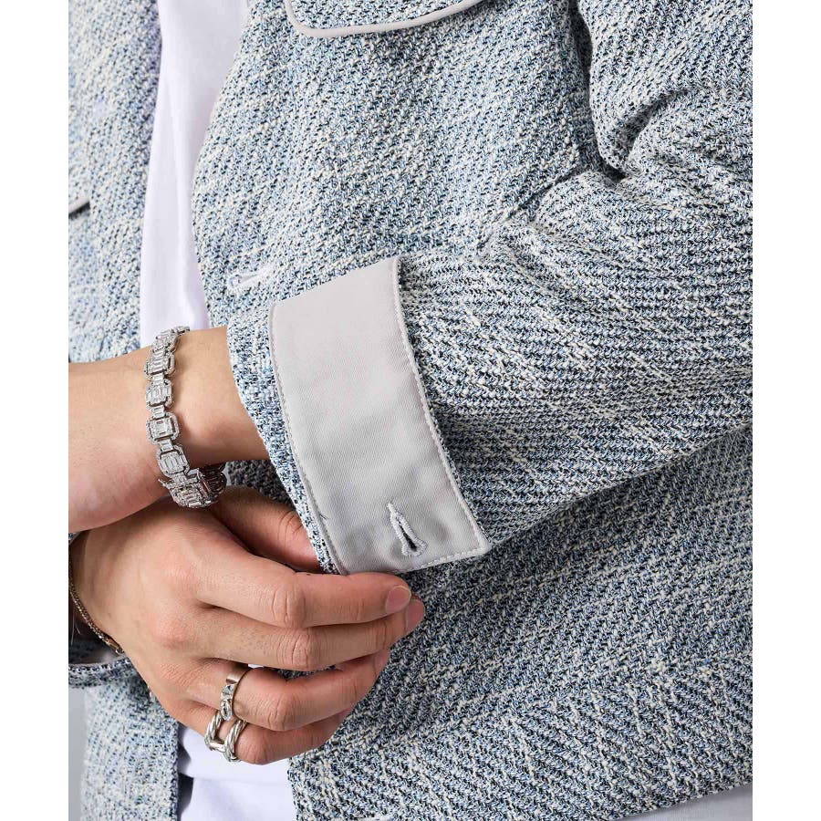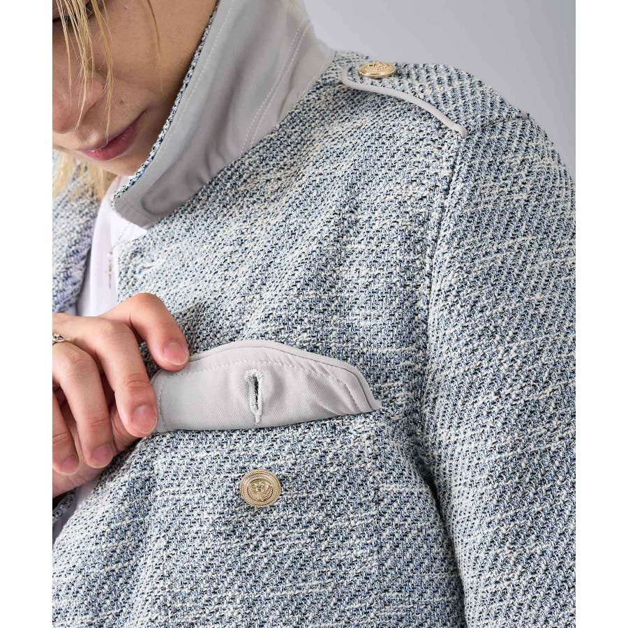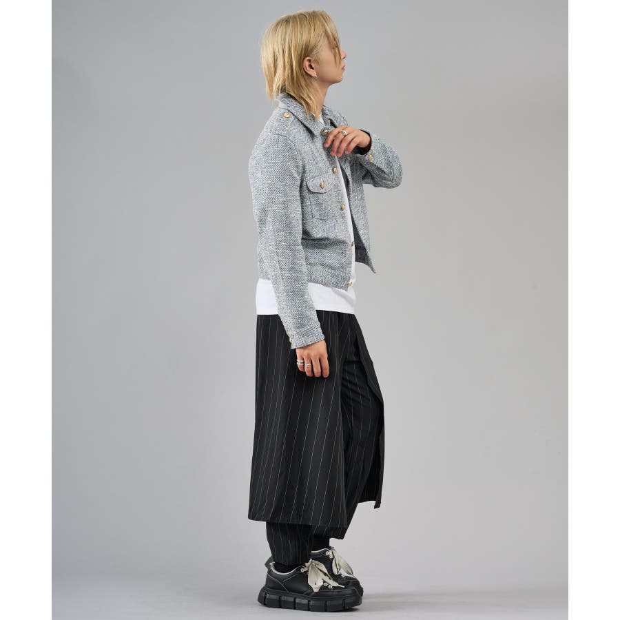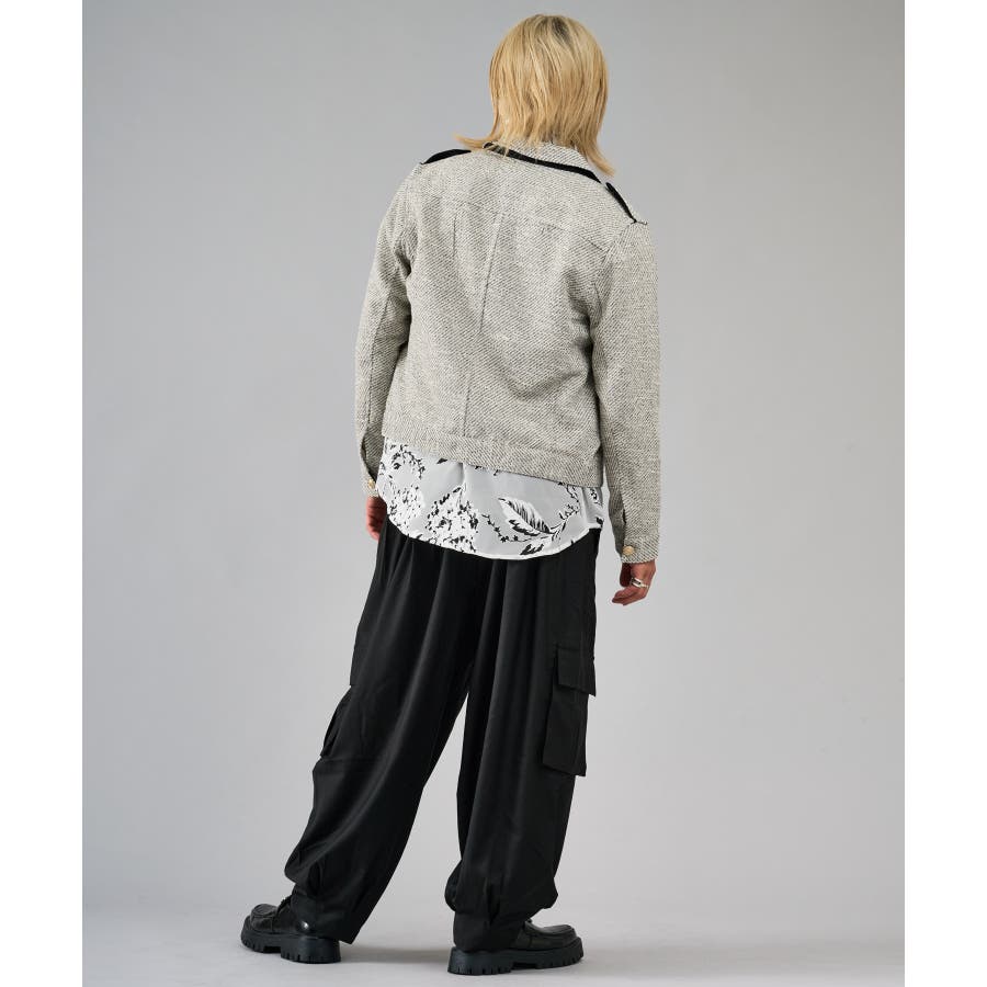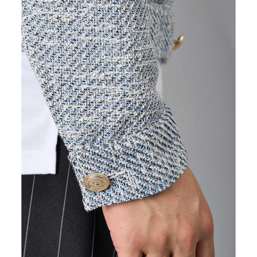 | ツイード素材のミリタリージャケット ■detail 金釦のエポレットがトレンドのミリタリー感を醸し出すデザイン 配色を替えた襟裏、カフス裏及びポケットのフラップ裏のカラーなど細部へも揺るぎない拘りを感じる ■fabric 清涼感あるサマーツィードはドライなタッチで、エレガントさもあって都会的 ■styling Tシャツにデニムと言ったラフなスタイルから、シャツとワイドスラックスでドレスアップしたスタイルまで、着回しのバリエーションが広いアイテムです | |||||||||||||||