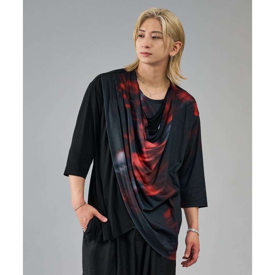 | ドレープデザインが特徴の7分袖Tシャツ ■detail 花柄をプリントした布を巻き付けた様なフロントデザイン 首元にゆとりのあるオフネックスタイルで涼しく着られます ■fabric ドレープ感がより演出できるレーヨン素材は滑らかな肌触りで、更にストレッチ性も高いのでリラックスして着られます ■styling ワイドスラックスやサルエルパンツなどゆとりのあるボトムと合わせるのがお勧めです | |||||||||||||||