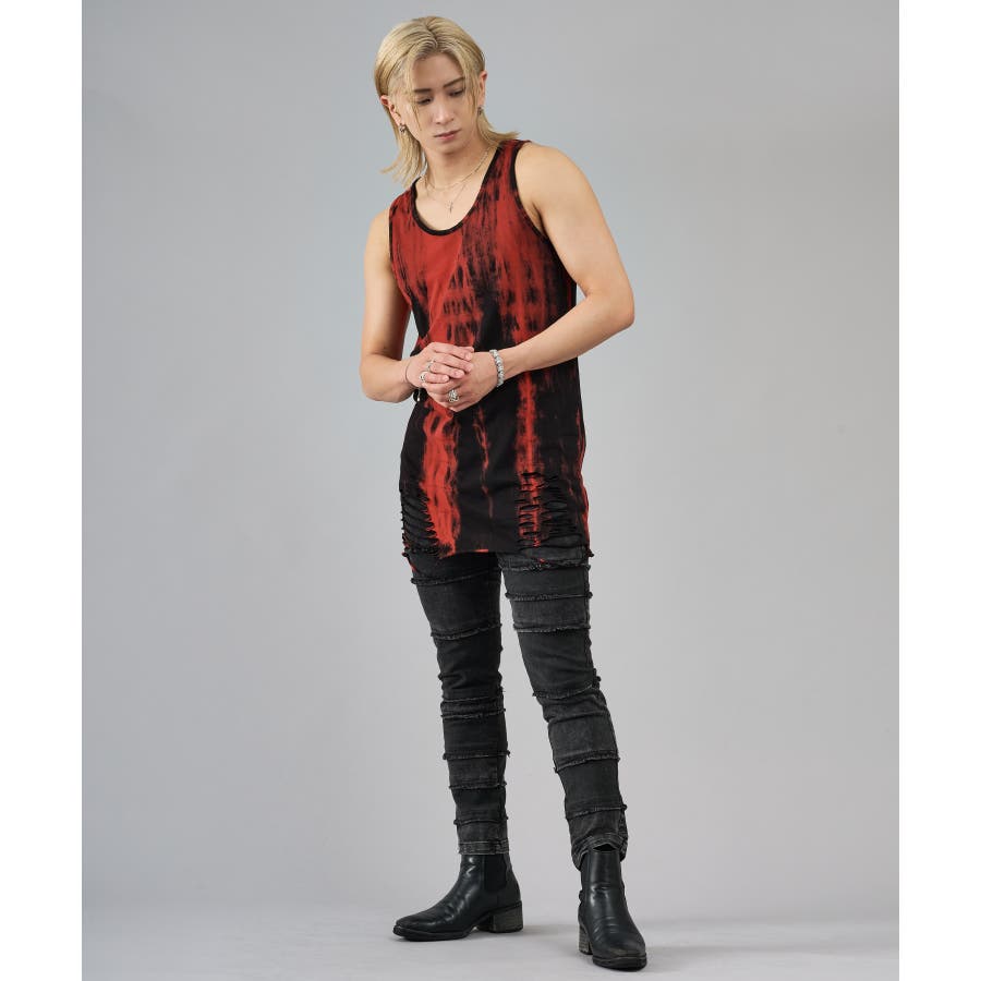 | インナー映えするグランジタンクトップ ■detail ストライプ状に染まったタイダイがアクセントとしてコーデを引き立てます 裾のダメージが目を惹き、長めの丈が更にトップスとのレイヤードに効果的 ■fabric コットン100%の天竺で着心地も良くイージーケアです ■styling Tシャツのインナーとして裾をチラ見せするのもありです 暑い夏には、このタンクの上にシャツやノースリーブなど、軽い物を羽織るだけで涼しくお洒落が楽しめます | ||||||||||||