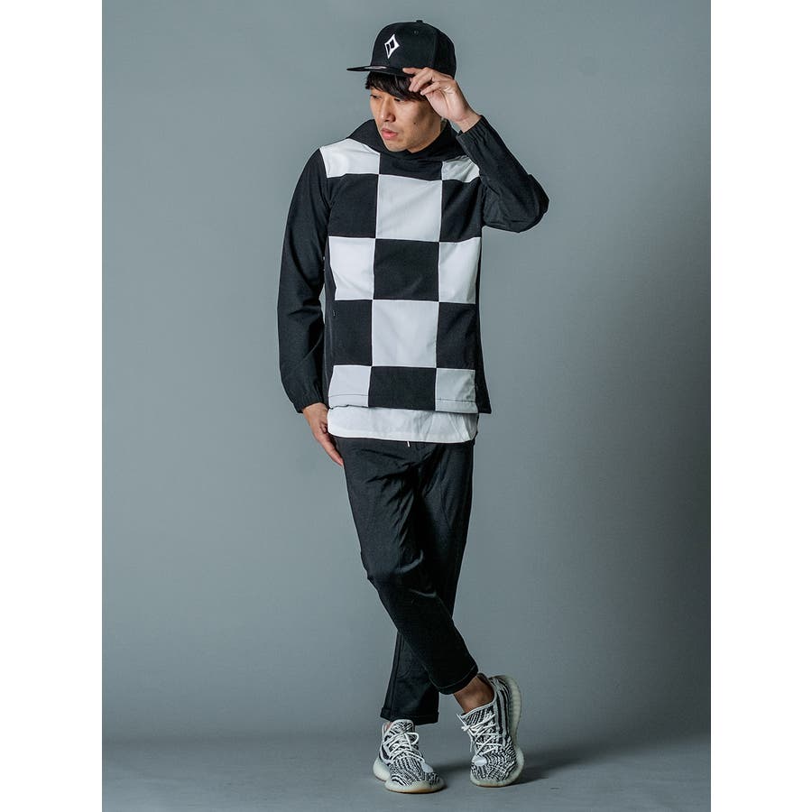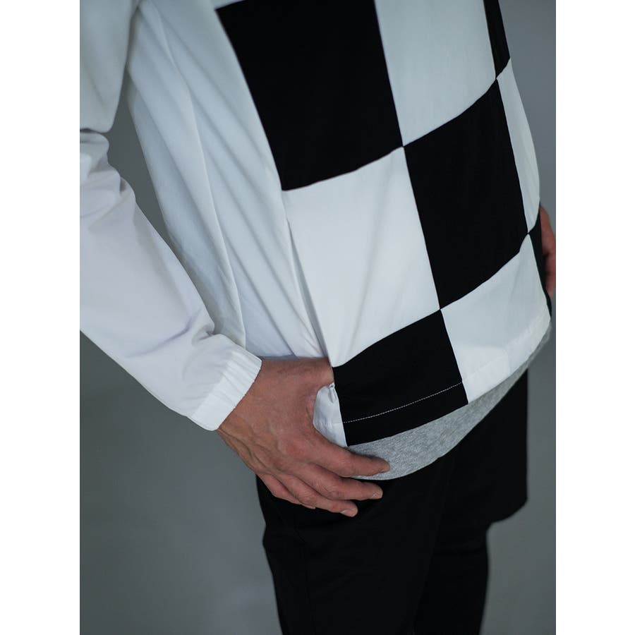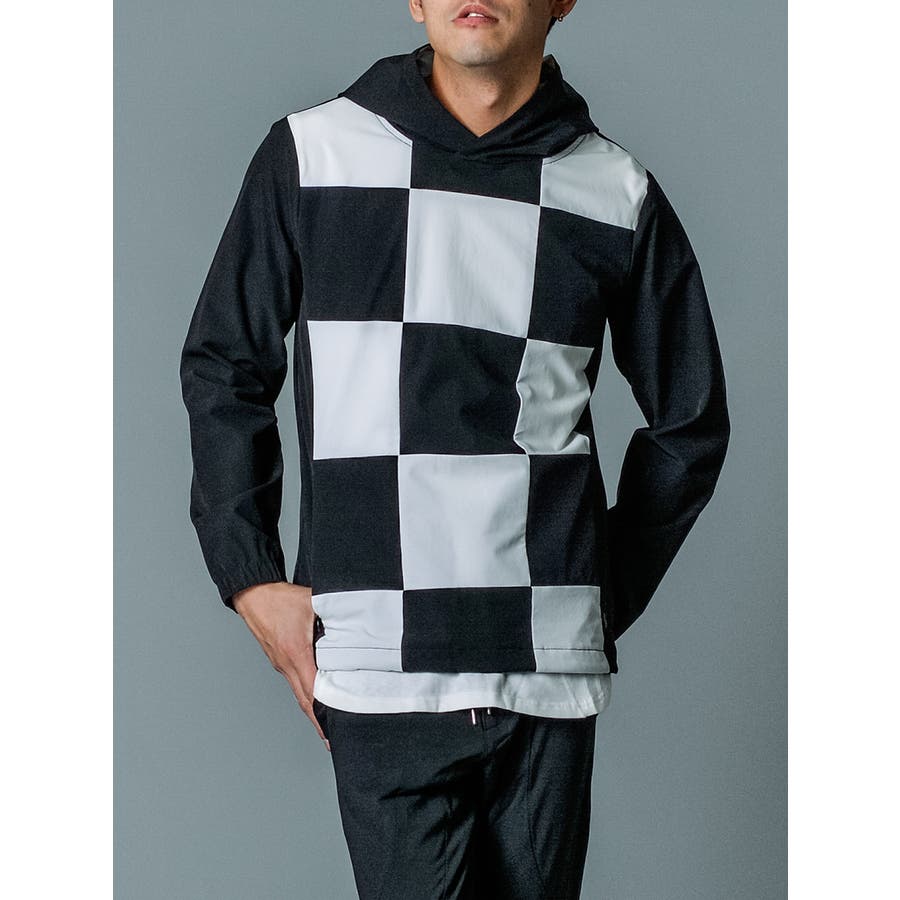 フロントの大胆に切替たブロッキングデザインは、アウターとしてもインナーとしてもアクセントになります。