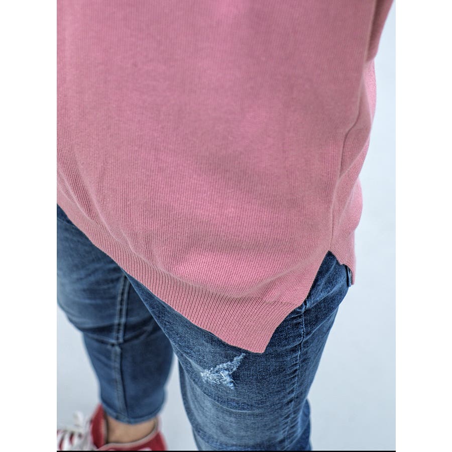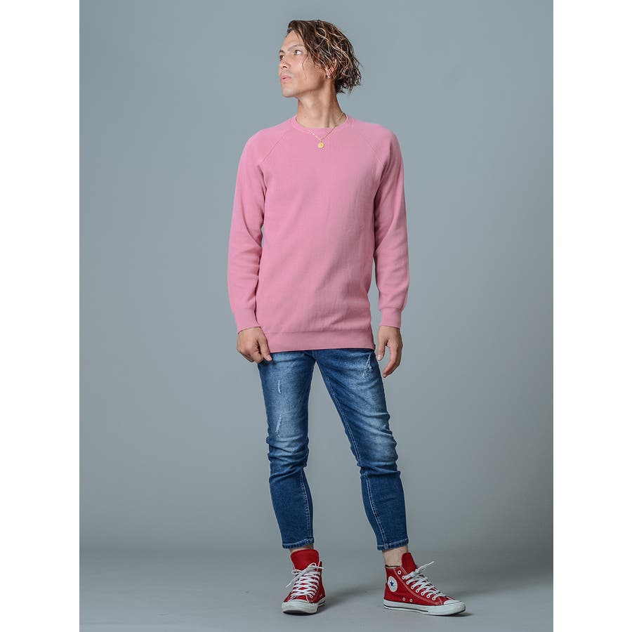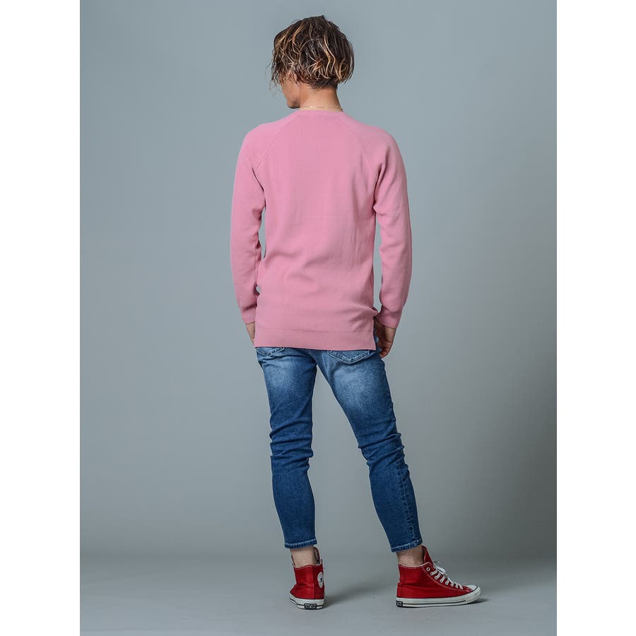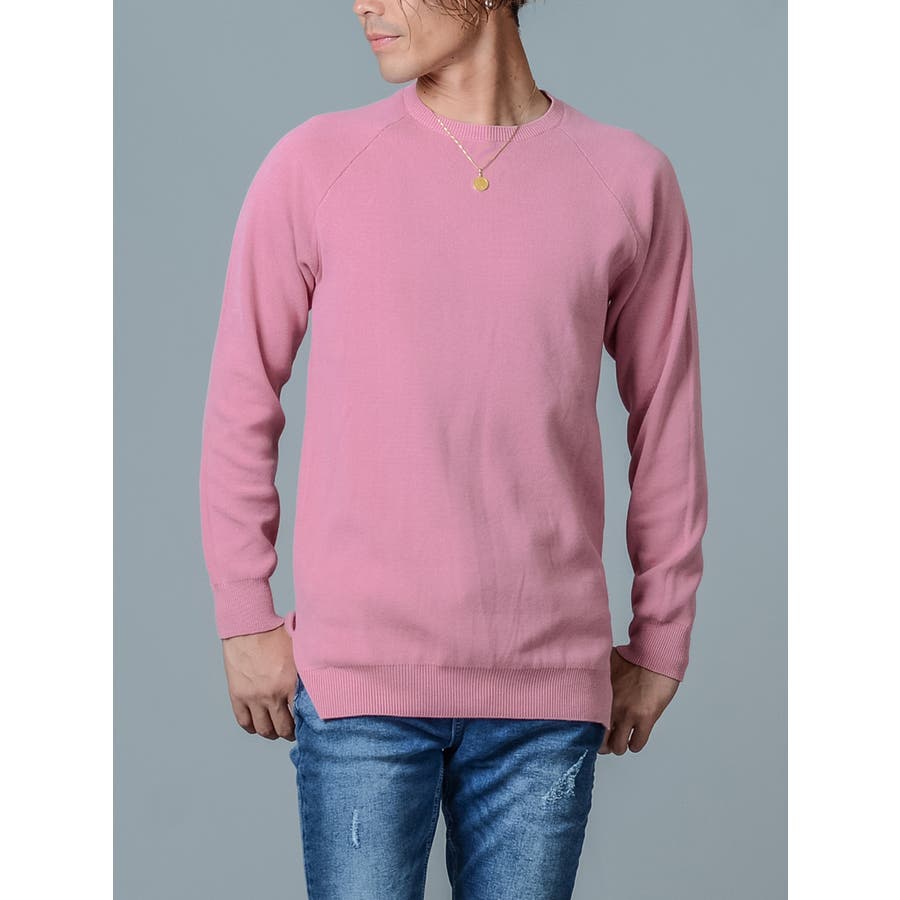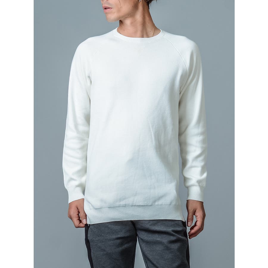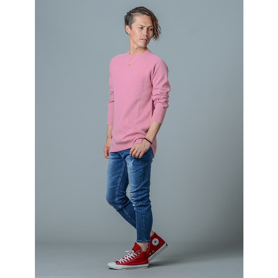コットンレーヨン糸は、柔らかく肌触りが良いので、ロンT感覚で素肌に着用することができるニットです。