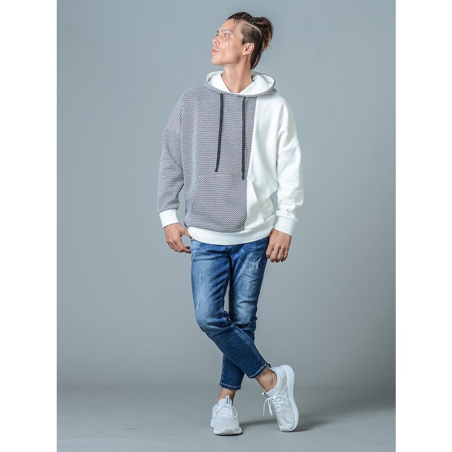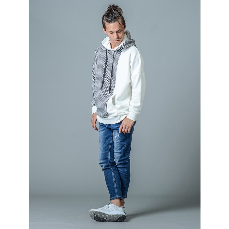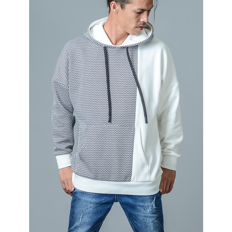 商品説明 | 市松模様と無地でサイドを切替えたプルパーカー |