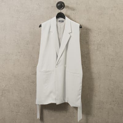 テーラード衿を備えたロング丈のジレです。