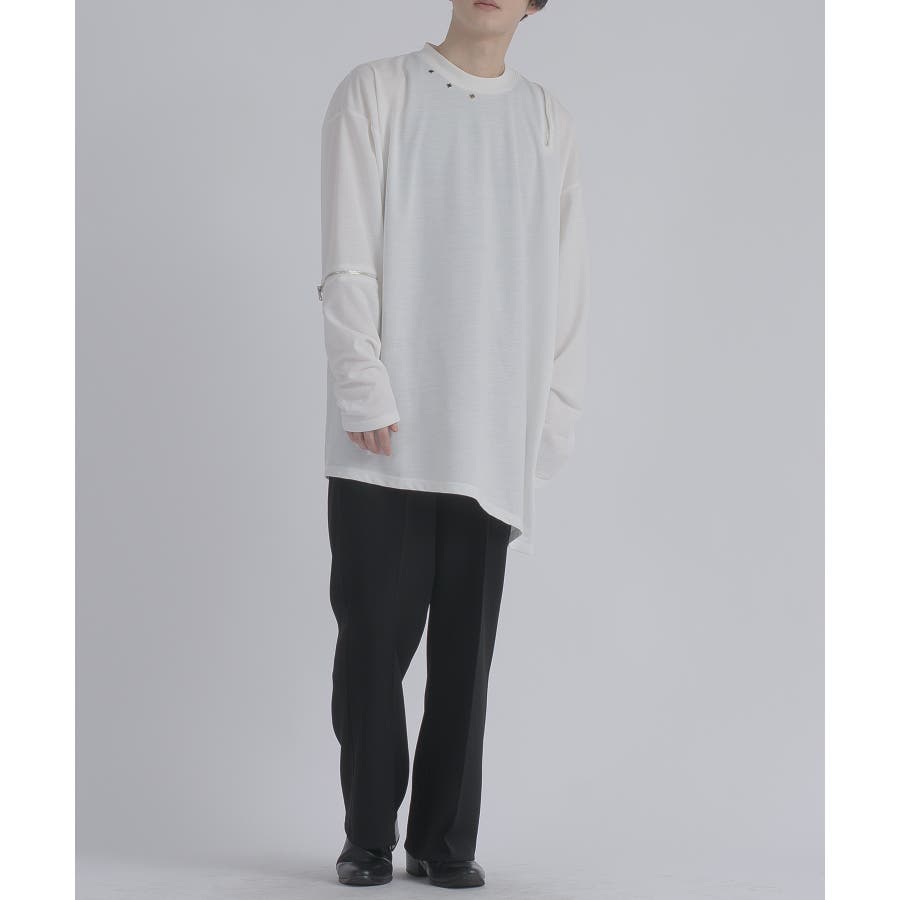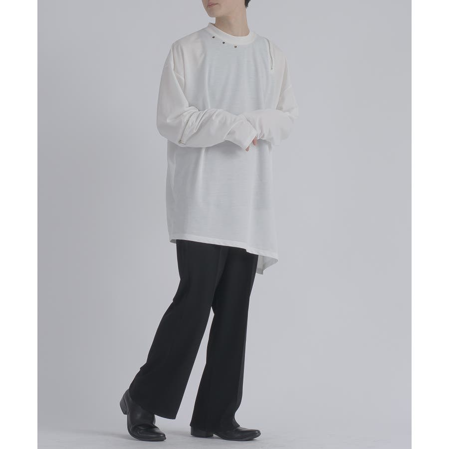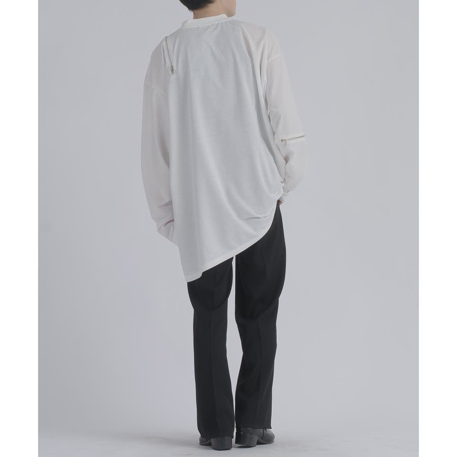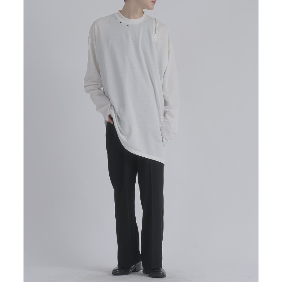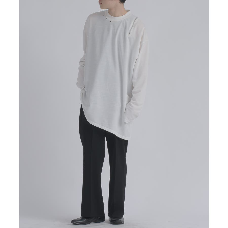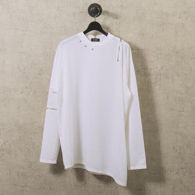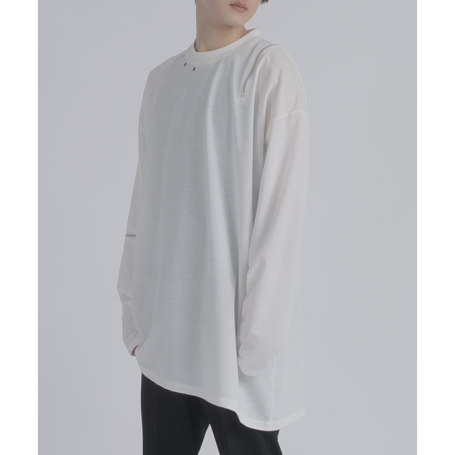 左右非対称なデザインでオーバーサイズのロンTEEです。