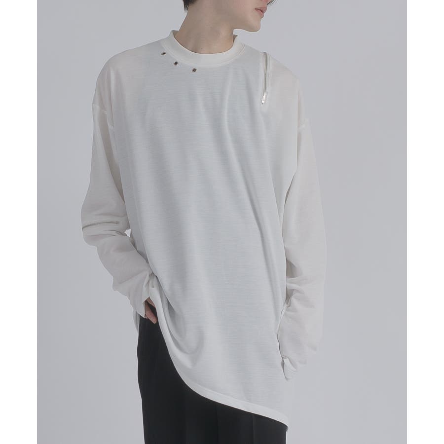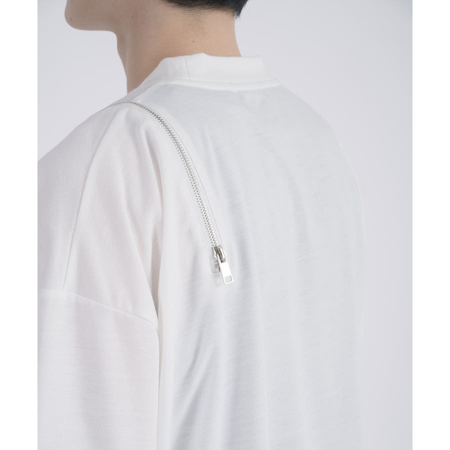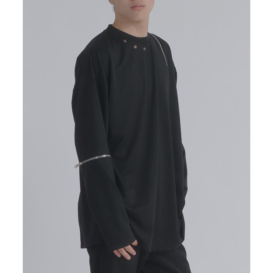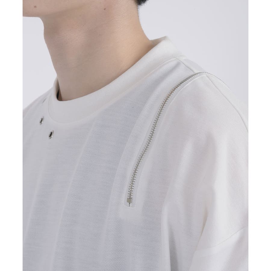 左肩と右袖に備えたZIPが印象的で、襟元に施した3つのアイレットが目を惹くデザインです。
