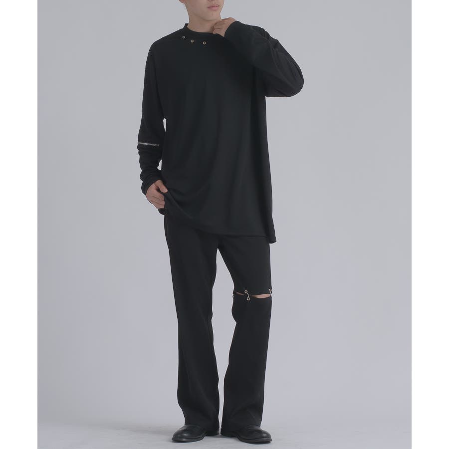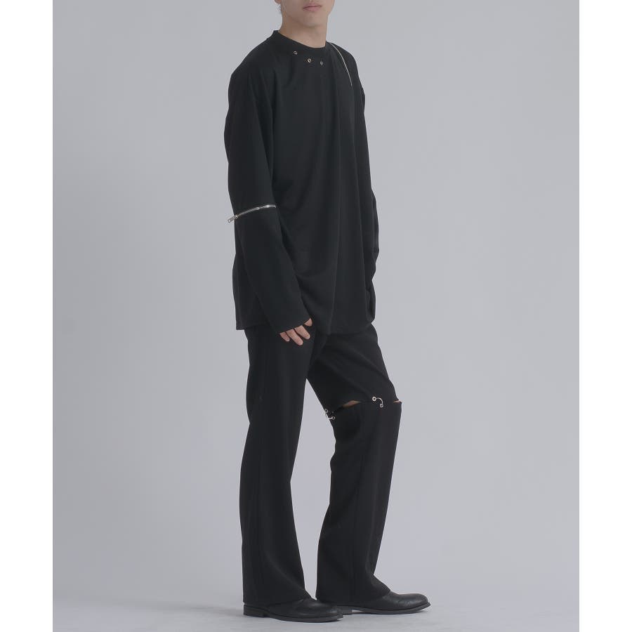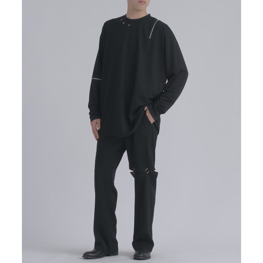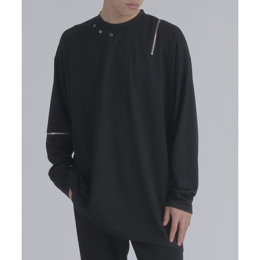 左肩と右袖に備えたZIPが印象的で、襟元に施した3つのアイレットが目を惹くデザインです。