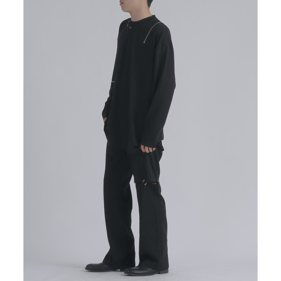 そして裾の長をも左右非対称であるのはデザイン性もさることながら、着用した時にオーバーサイズ故の裾の無駄なダブつきを抑えてくれます。