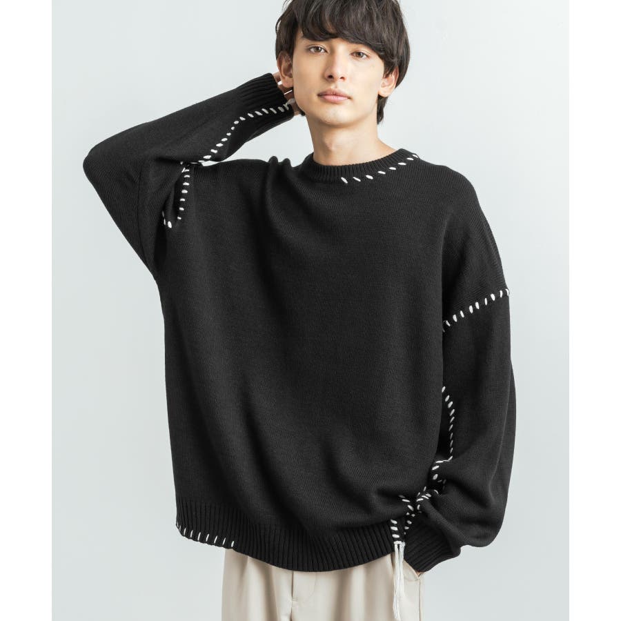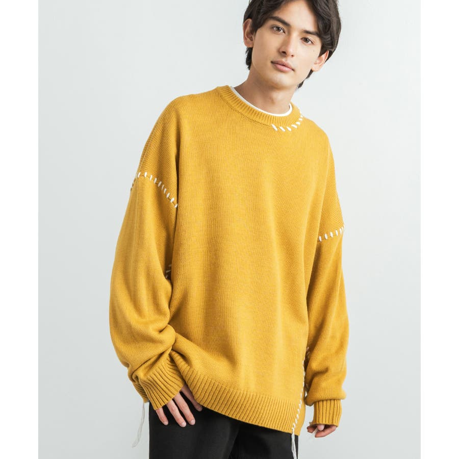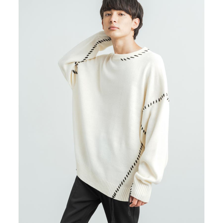 カラ―ハンドステッチ クルーネックニット/オーバーサイズ セーター