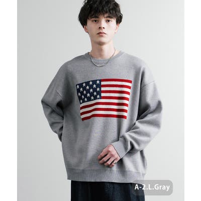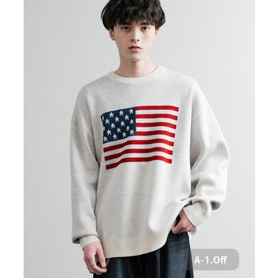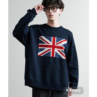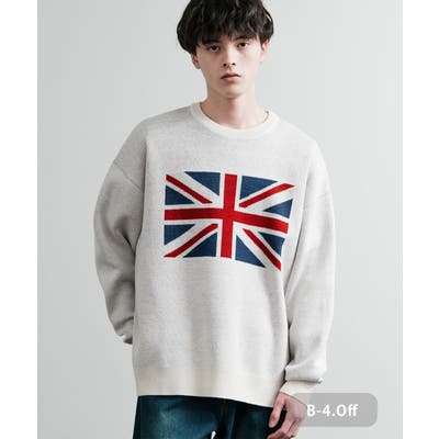 米国(USA)と英国(UK)の国旗デザインを施したオーバーサイズフラッグニット。