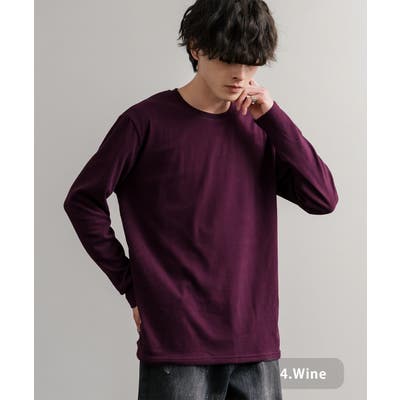 襟のあるシャツやハイネックTとも重ね着しやすいクルーネック仕様。