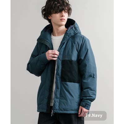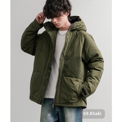 防寒性とデザイン性を兼ね備えた、ワンポイント刺繍中綿フードジャケット。