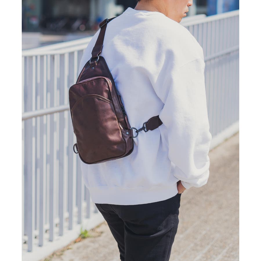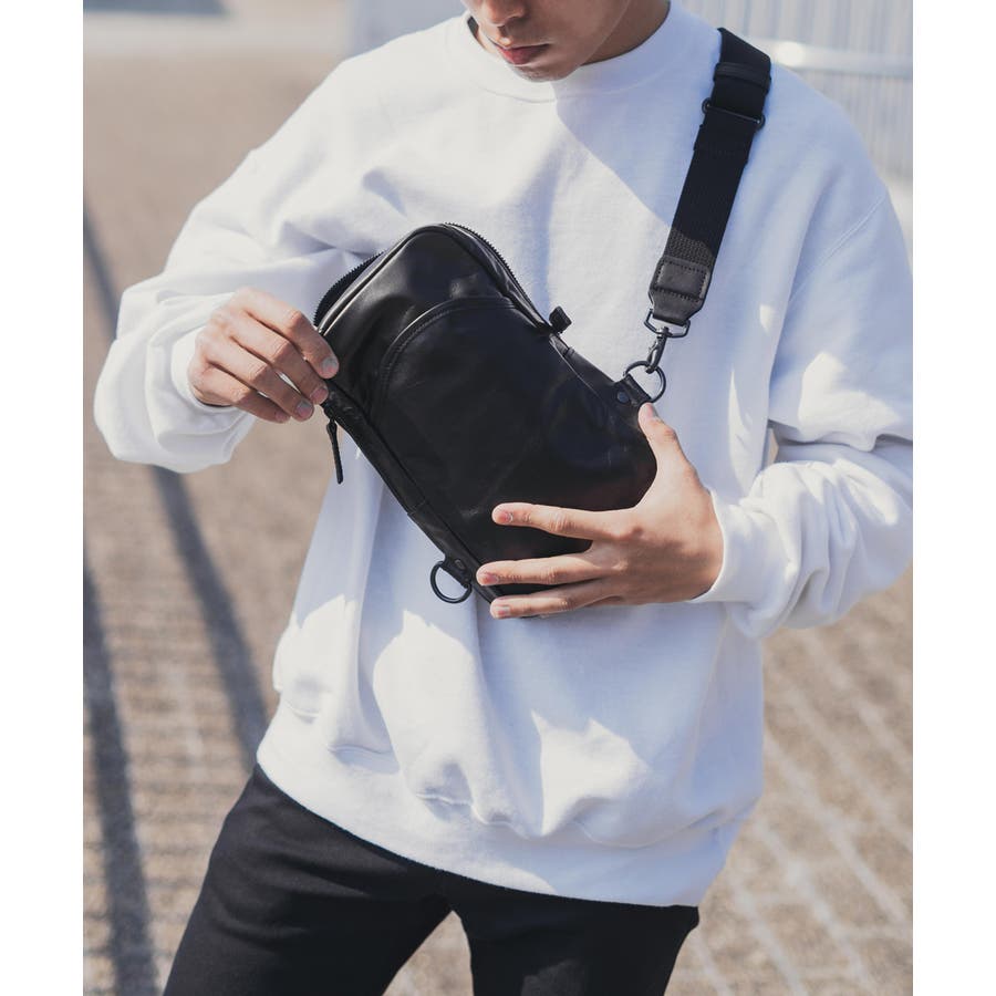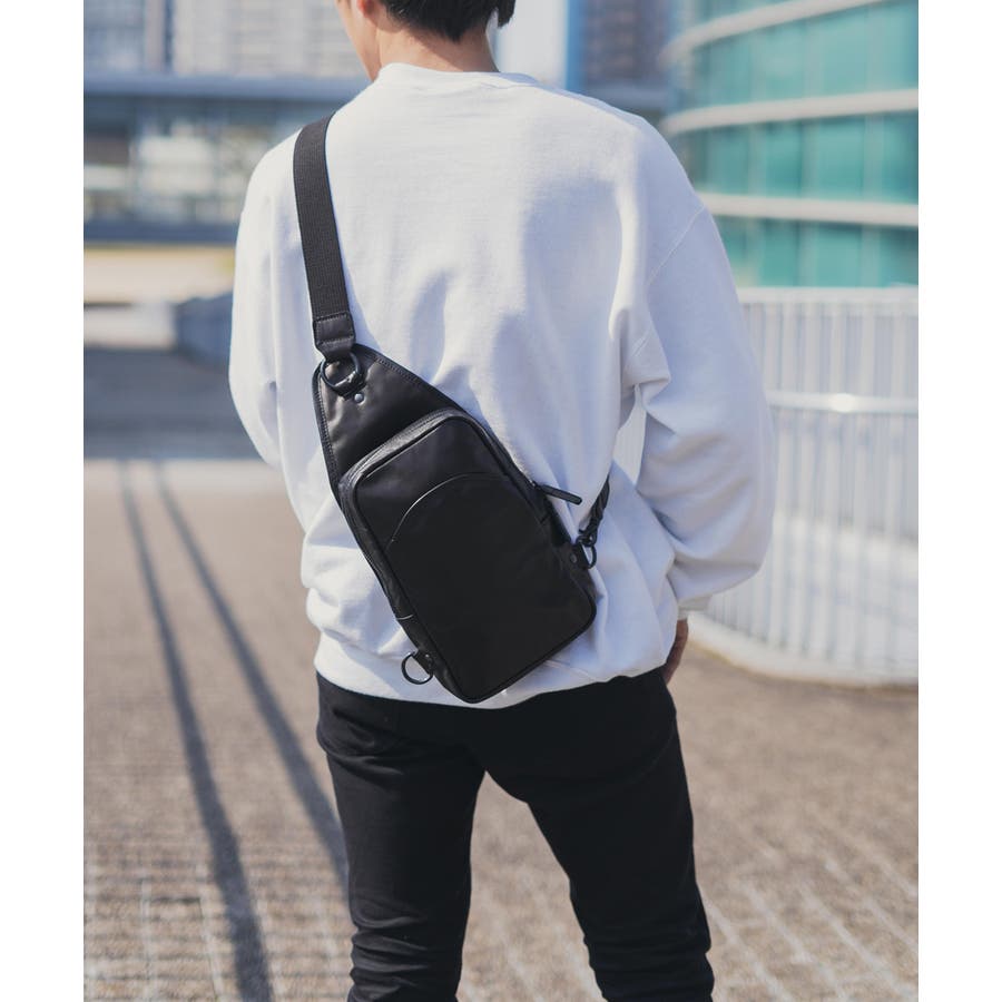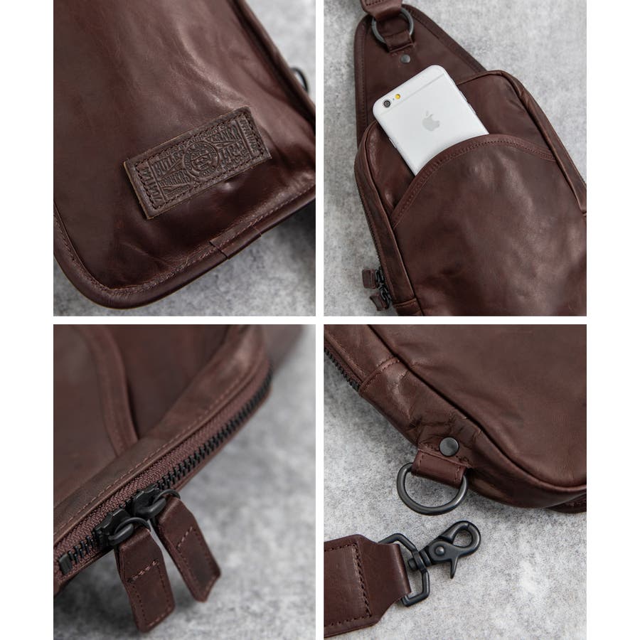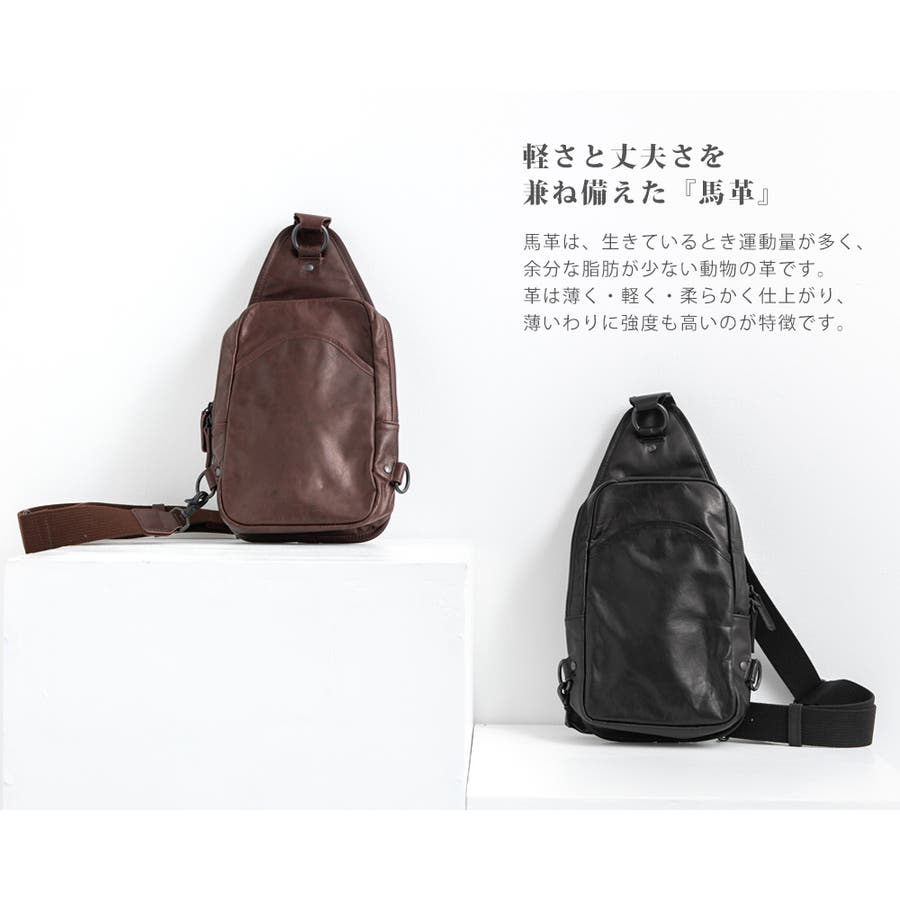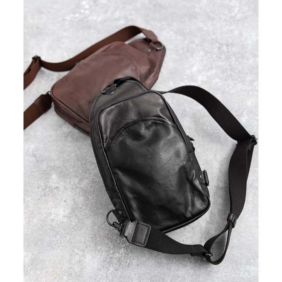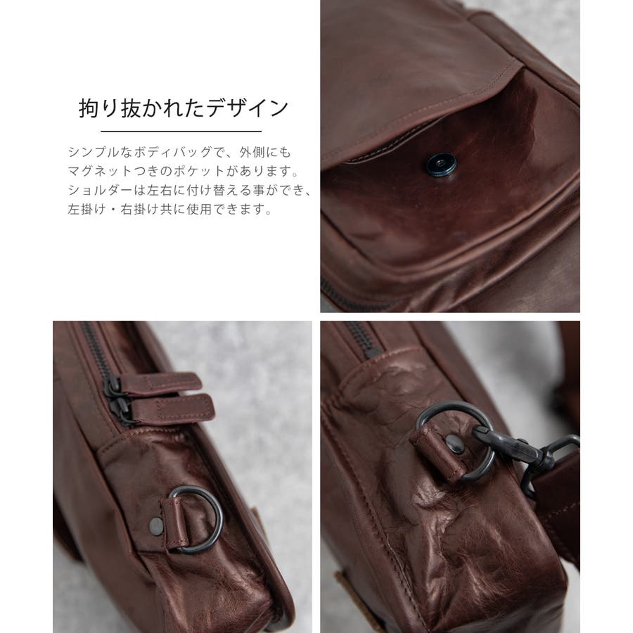 シンプルなボディバッグで、外側にもマグネット付きのポケットがあります。ファスナーの開口を広くとっているため、荷物の出し入れもスムーズに◎ショルダーは左右に付け替える事ができ、左掛け・右掛け共に使用できます。金具・ファスナーは、国産ブラックメッキをかけて作られています。背中に当たる部分には、ウレタン入りで荷物の形が背中側にでる事がありません。