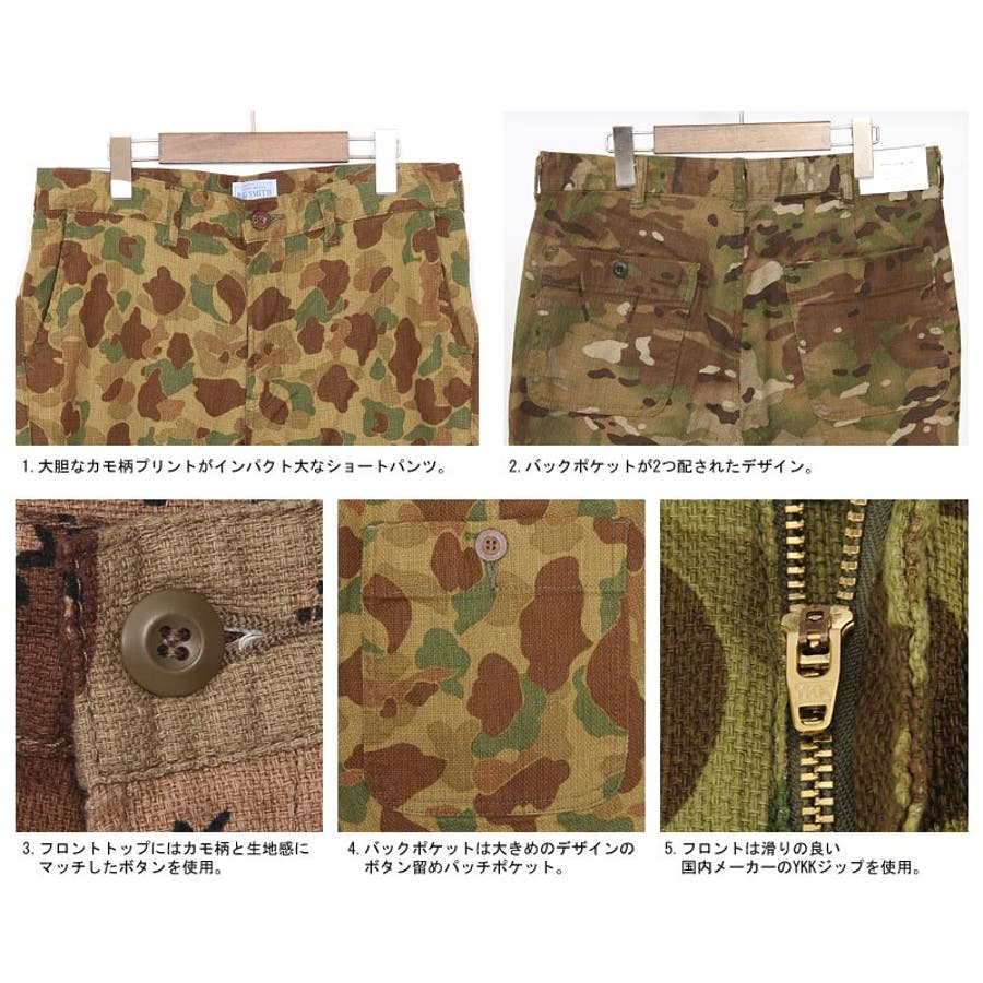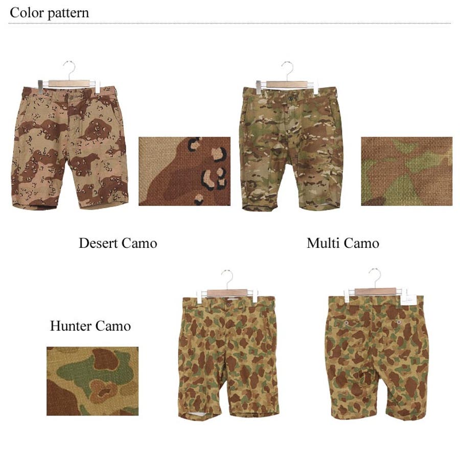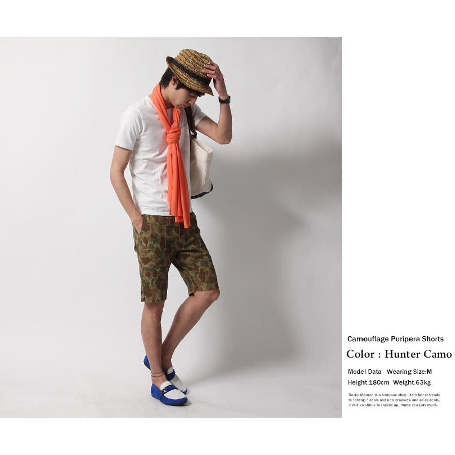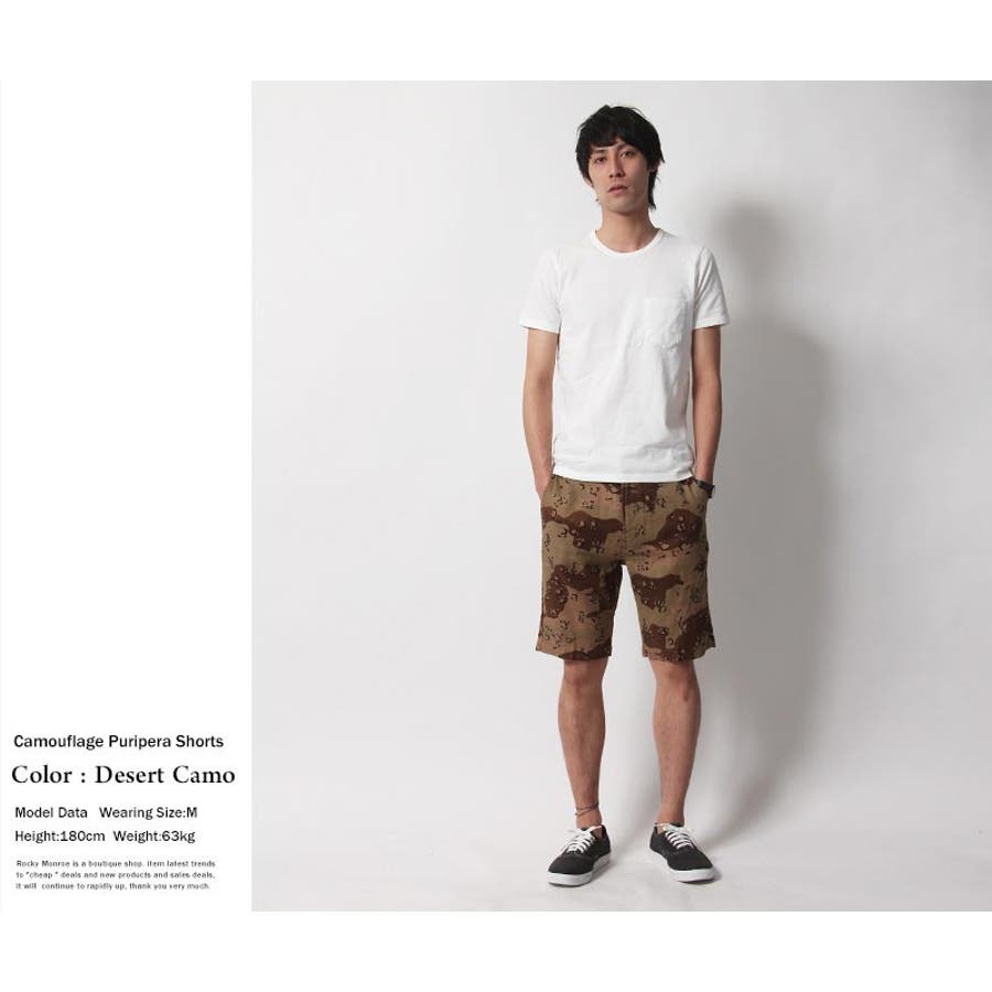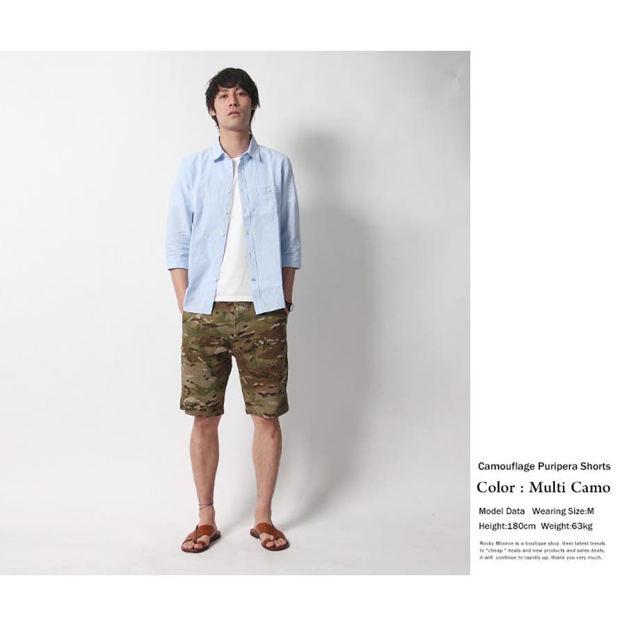 コットンリネンプリペラ素材カモ柄プリント迷彩ショートパンツ メンズ ハーフパンツ