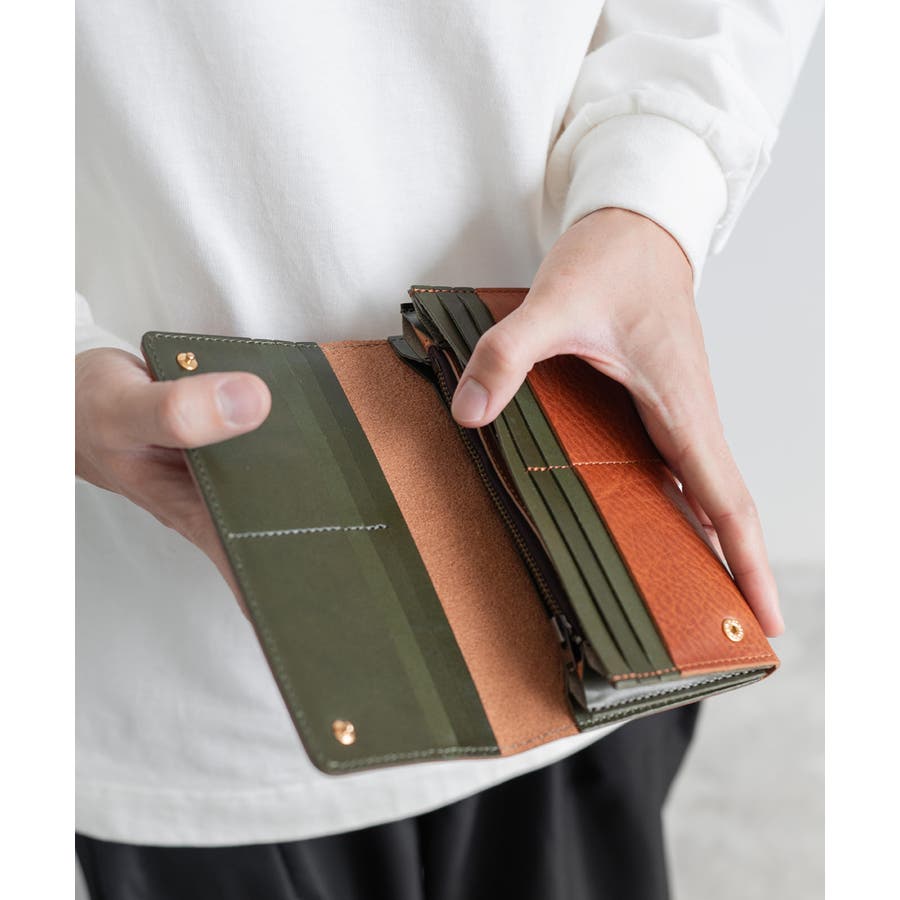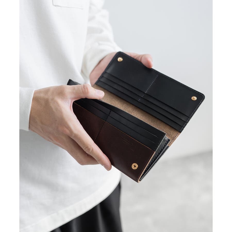 外側は、手に馴染むしっとりと柔らかい質感。内側は、カードなどの出し入れがしやすいように、やや硬めの質感。革が配色になっているのもポイントで、使い込むほどに深い味のある表情に◎