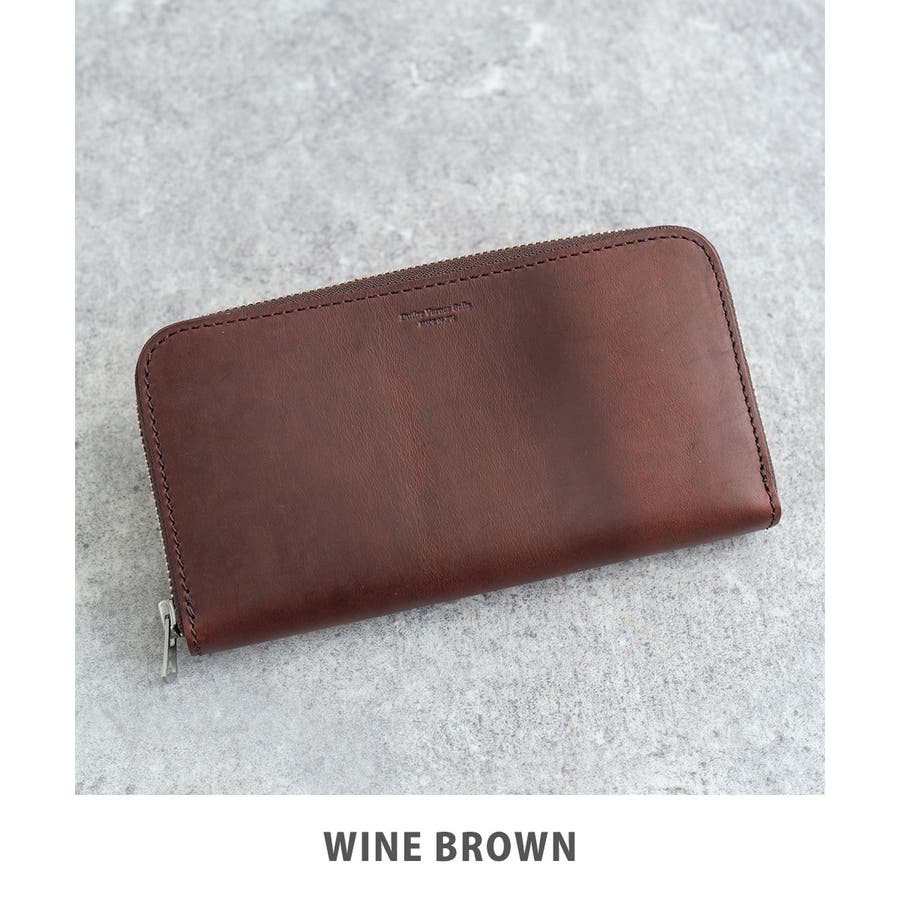 ラウンドジップ開閉のロングウォレット。YKK UNIVERSAL(ユニバーサル)ジップを使用しています。表にはブランドの刻印と、丁寧・繊細に作り上げられた国産の型押し。内側は、栃木レザーのヌメ革を使用して、配色で仕上げています。また、ジップ付きのコインケースで二つに区切られたスペースがあり、お札も分けて収納できます。さらに、カード収納が左右で8か所、広めのフリーポケットも2か所備えています。