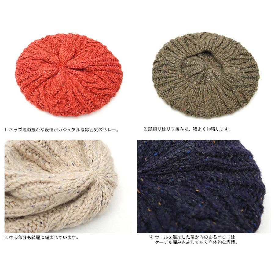 ネップ混の豊かな表情がカジュアルな雰囲気を演出するニットベレー帽。 ウールを混紡した温かみのあるニットは、ケーブル編みを施しており立体的な表情を持っています。上質な毛糸をふんわりと編み上げ、 ふっくらとした厚みを持たせているので、ふんわりと軽く、それでいてしっかりと暖かいのが嬉しいポイント。