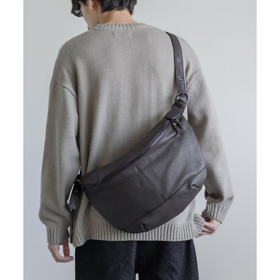 丸みのある底面が特徴的で、表側と裏側にダブルのYKKファスナーを設けています。スムーズな開閉や取り出しやすさ、デイリーに使いやすいので魅力的です。ショルダー部分は、右と左で穴のあけ方を変えているため、体型に応じたショルダーの長さを調節していただけます。