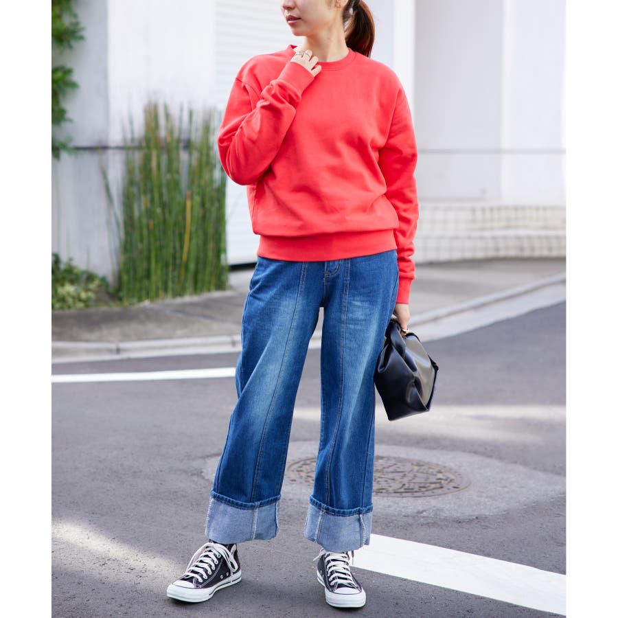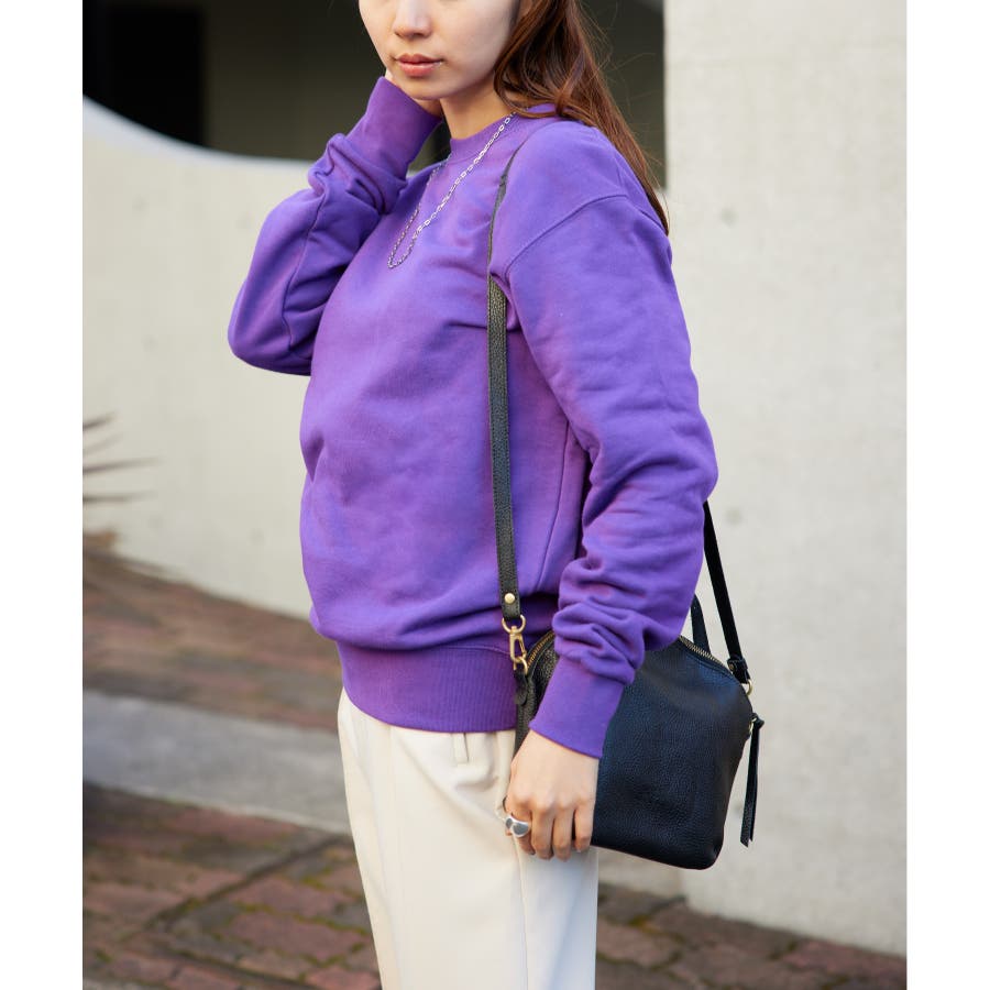 シンプルな無地ボディはどんなスタイリングにも合わせやすく、ボトムスを選ばずにお使い頂けます。