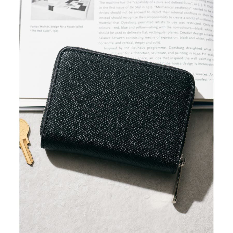 ・サフィアーノレザー風の型押しで高級感あふれる、手のひらサイズのウォレット。