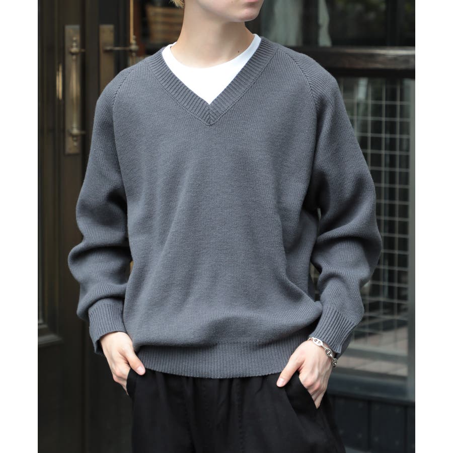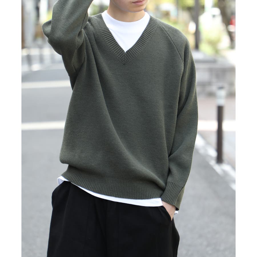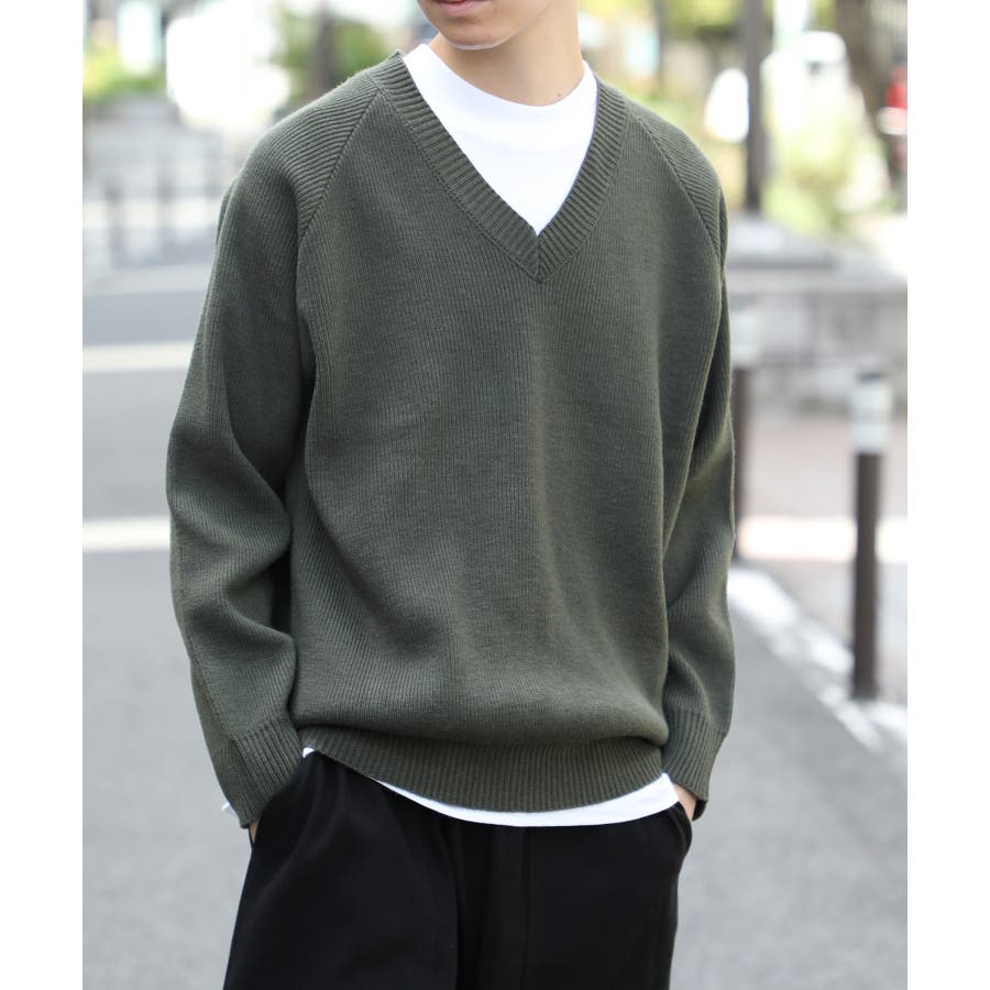 超高密度で編み込んだトレンド感を備えたミリタリーニット!今冬のトレンドを感じるVネックデザインで抜け感を演出◎