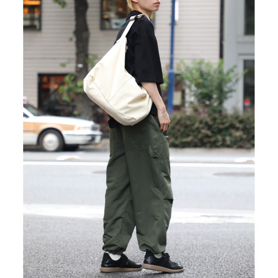 ナチュラルで丈夫なキャンバス素材を使用したワンハンドルショルダーバッグ。