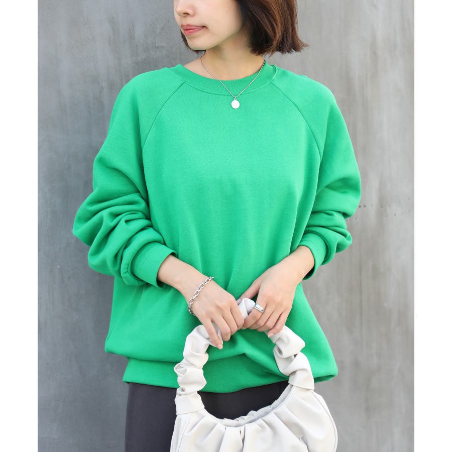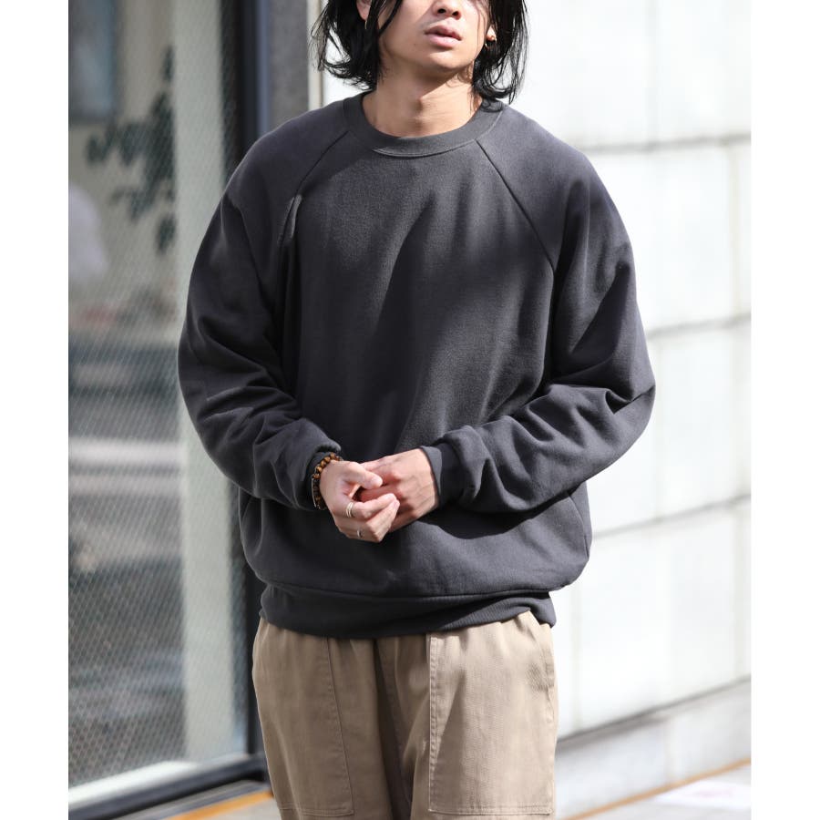 ディティールも当時を再現したラグランスリーブ仕様で、裏側を起毛仕上げにすることで、気持ちよく柔らかな肌当たりを実現しています。
