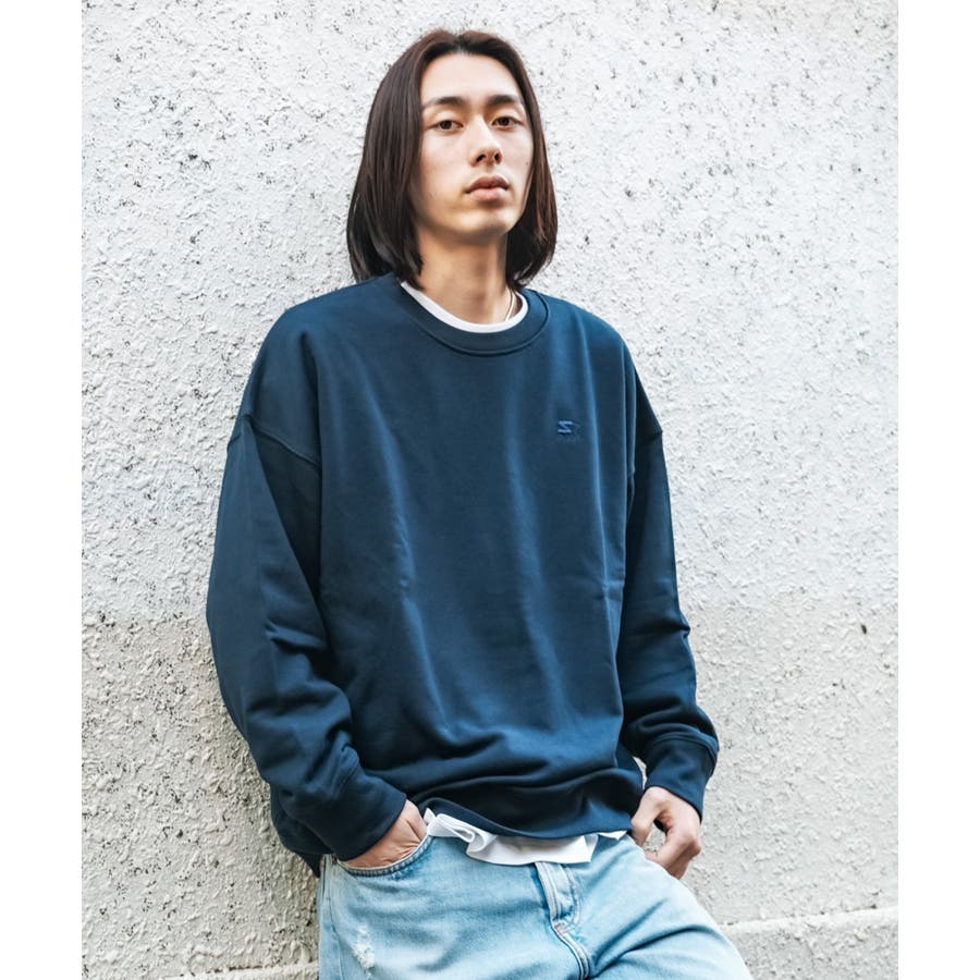 柔らかな裏毛スウェット素材を使用したスウェットトレーナー。