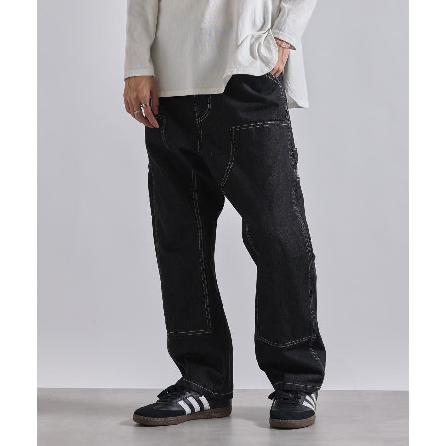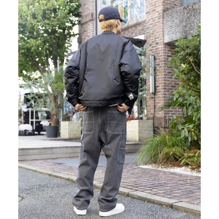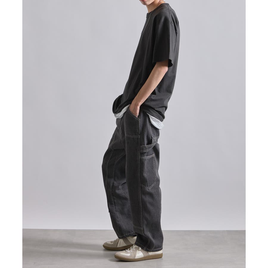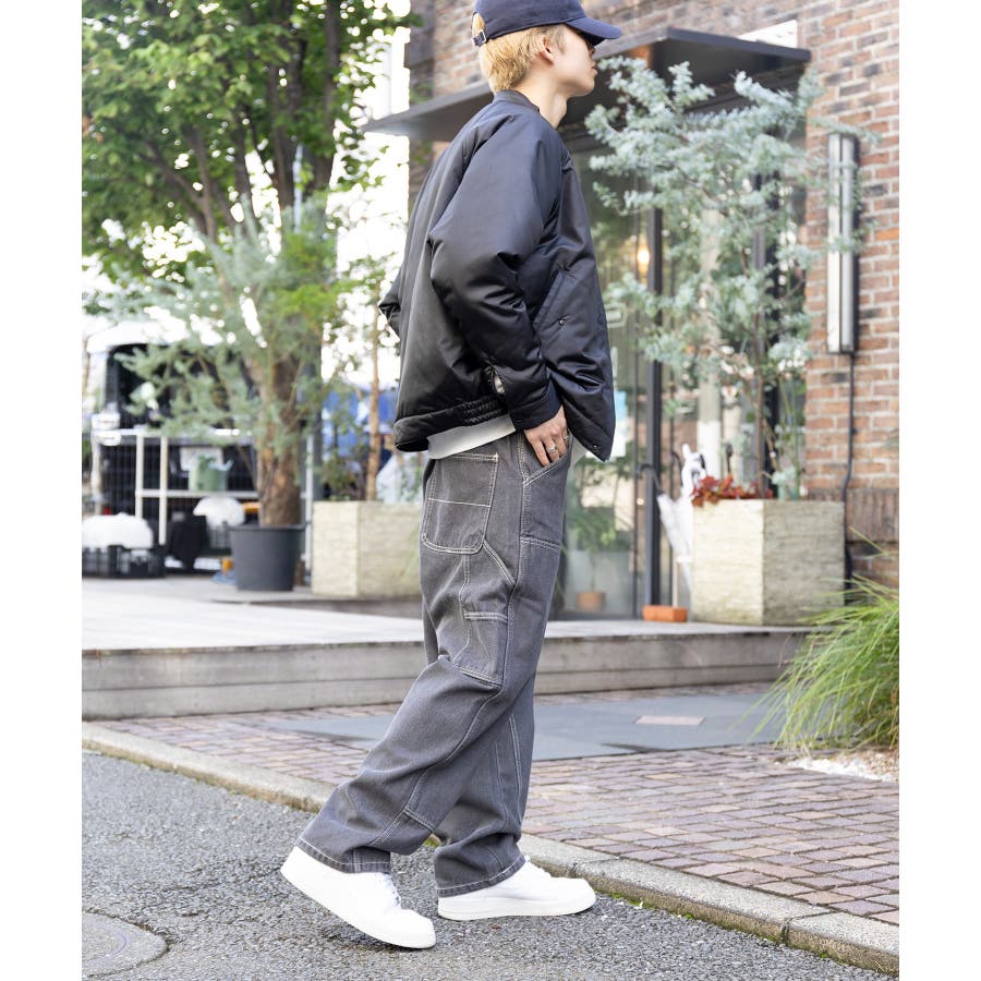 ・タフな生地感とワイドなシルエットが特徴のアイテム。