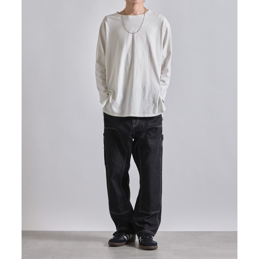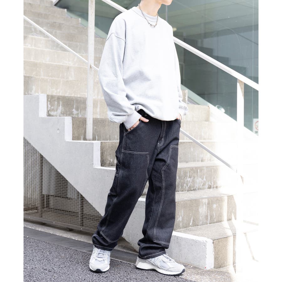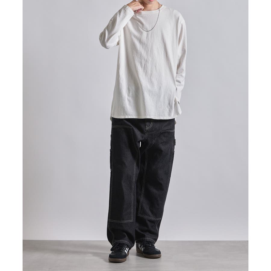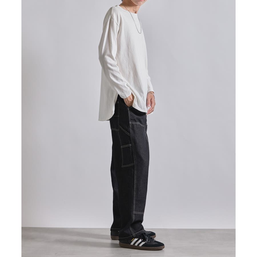 ・タフな生地感とワイドなシルエットが特徴のアイテム。