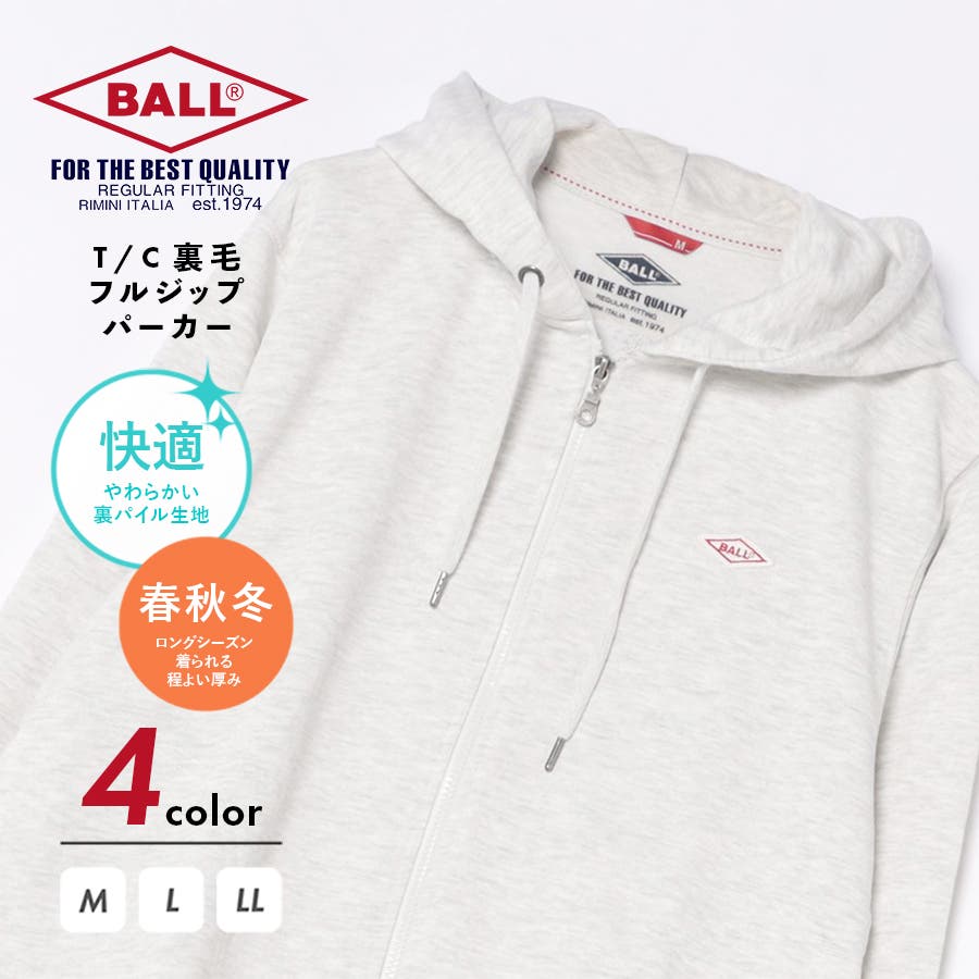【BALL】T/C裏毛 ワッペン付きフルジップパーカー 64533