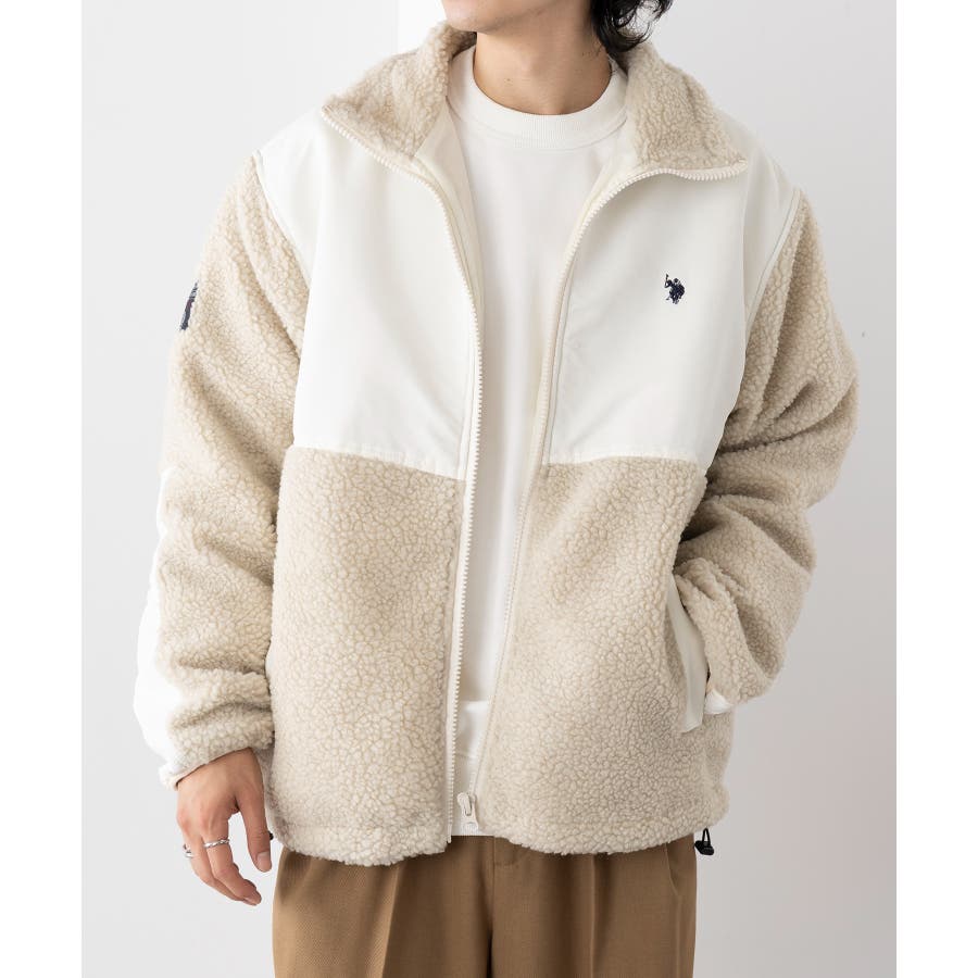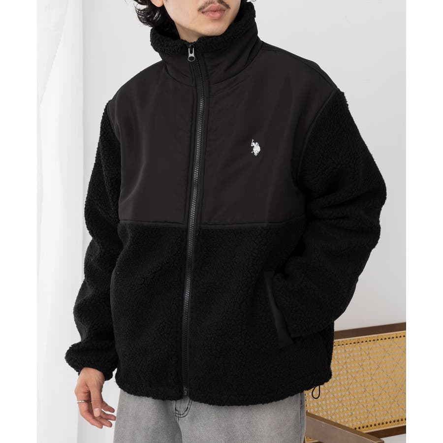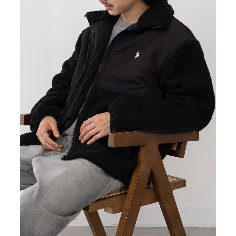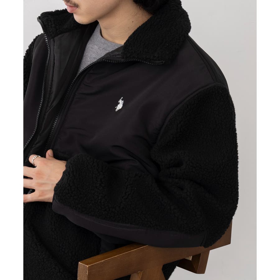 ワンポイントロゴ ポニー刺繍 ボアジャケット